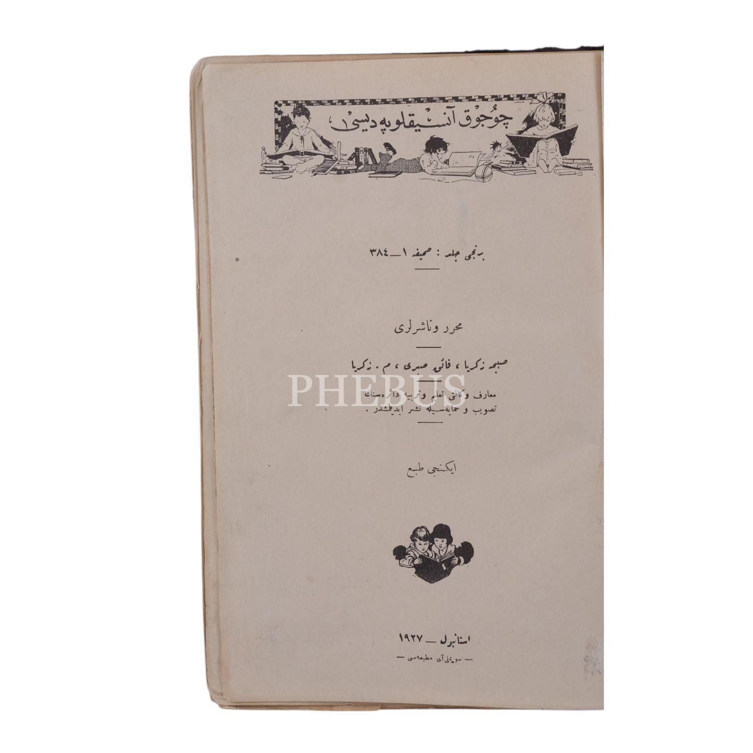 ÇOCUK ANSİKLOPEDİSİ, 1. cilt, Sabiha Zekeriya-Faik Sabrî-M. Zekeriya, 1927, Sevimli Ay Matbaası, 384 sayfa, 16x24 cm...