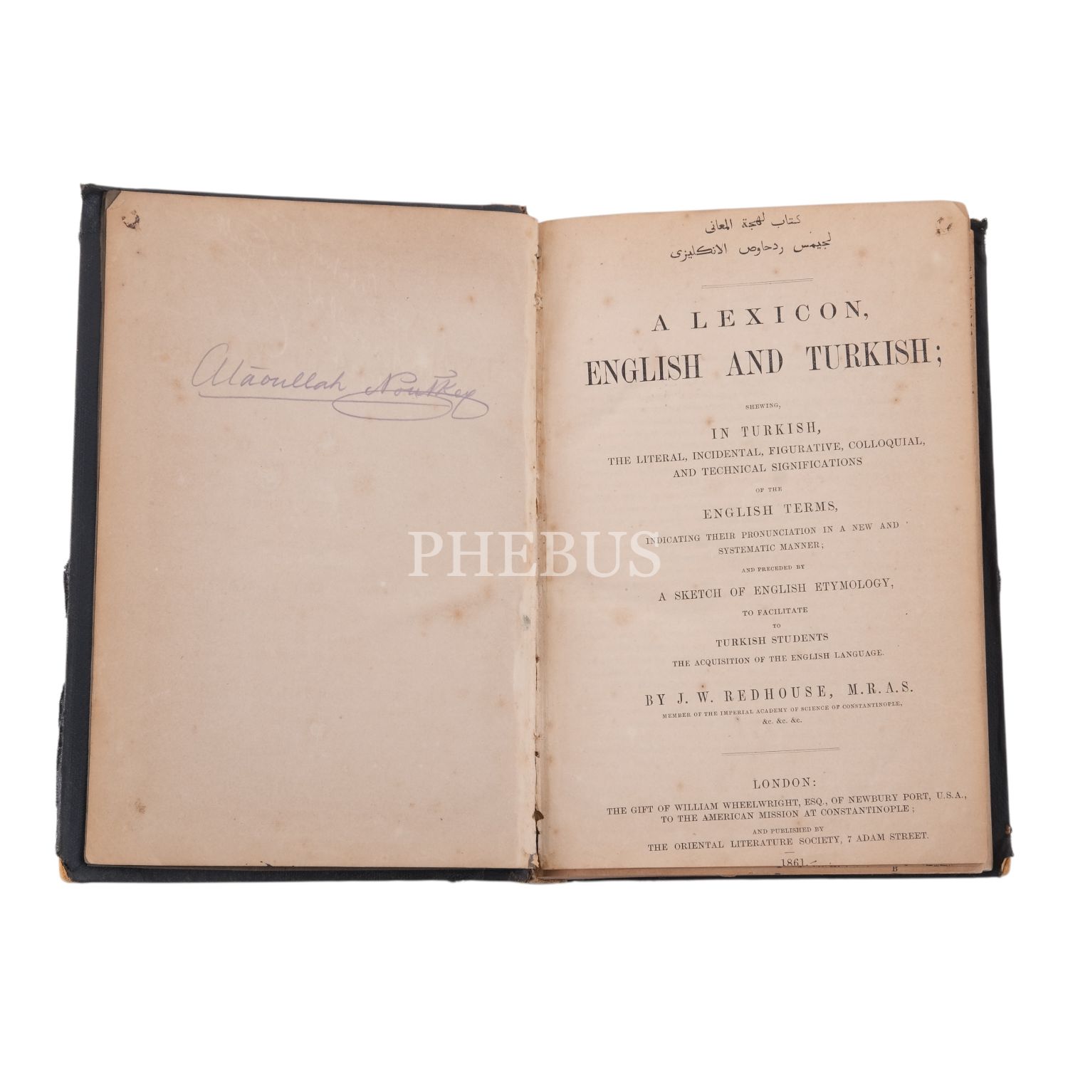 A LEXICON, ENGLISH and TURKISH, Sir James Redhouse, 1861, Tho Oriental Literature Society, Londra, 827 sayfa, 16x24 cm...