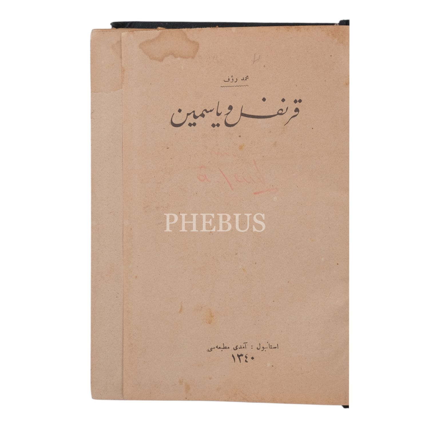 KARANFİL ve YASEMİN, Mehmed Rauf, 1340, Âmedî Matbaası, 447 sayfa, 12x19 cm...