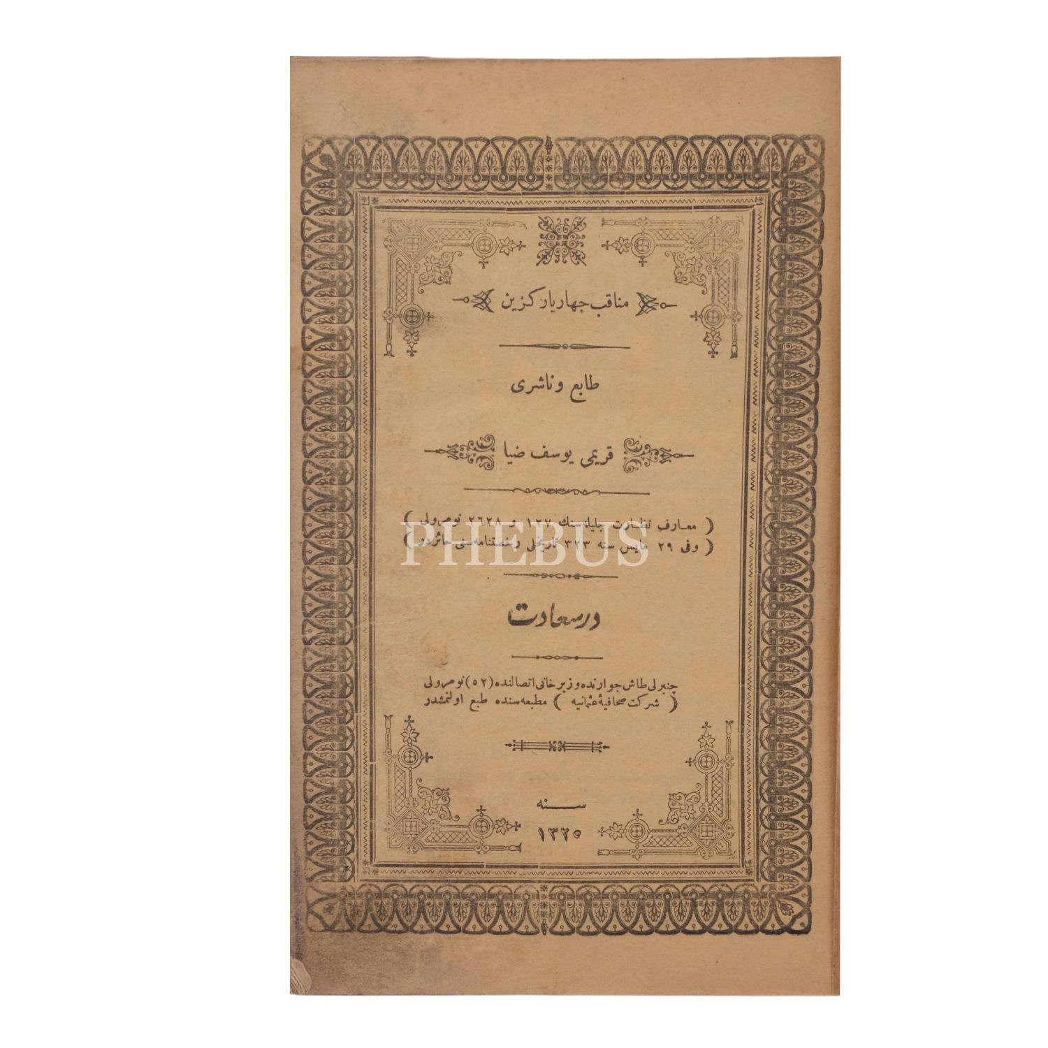 MENÂKIB-I ÇiHÂR-I YÂR-I GÜZÎN, Hazırleyen: Karîmî Yusuf Efendi, 1325, Şirket-i Sahafiye-i Osmaniye Matbaası, 485+10 sayfa, 16x24 cm...