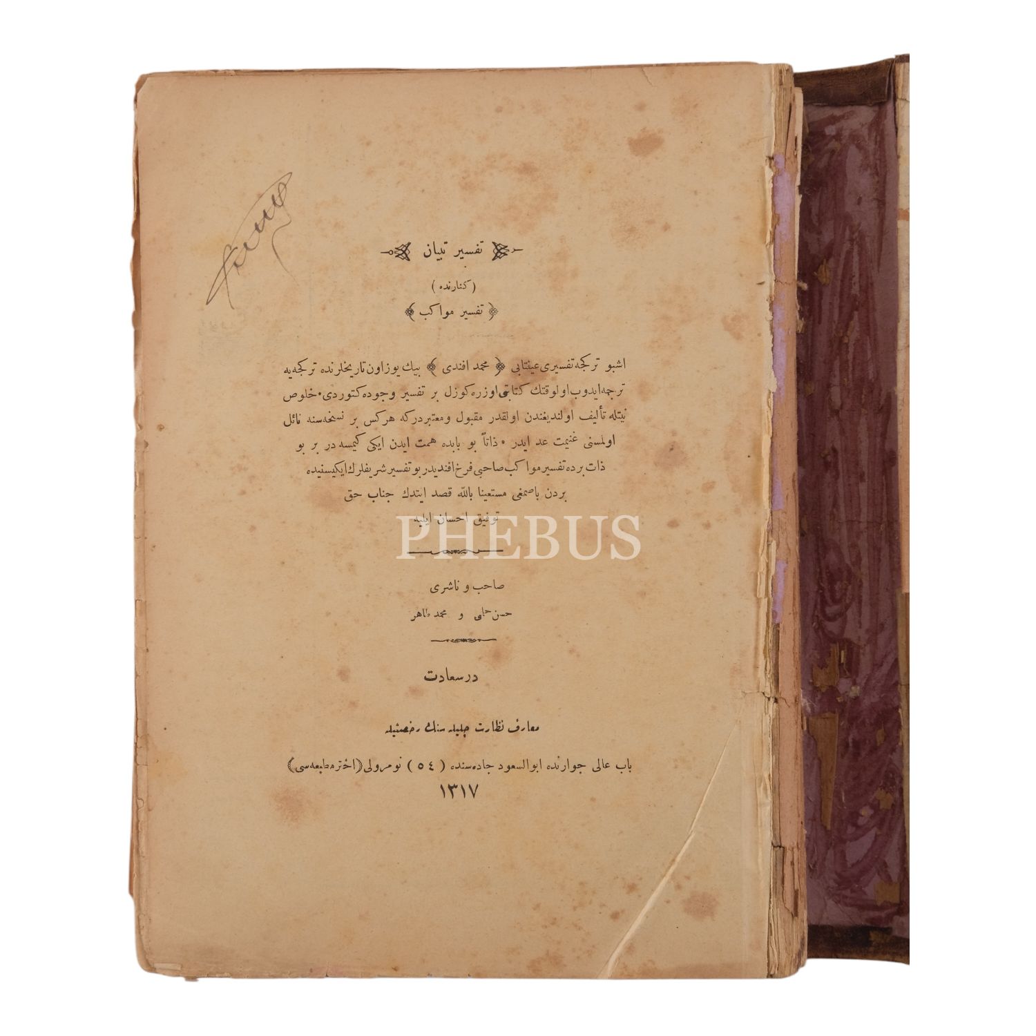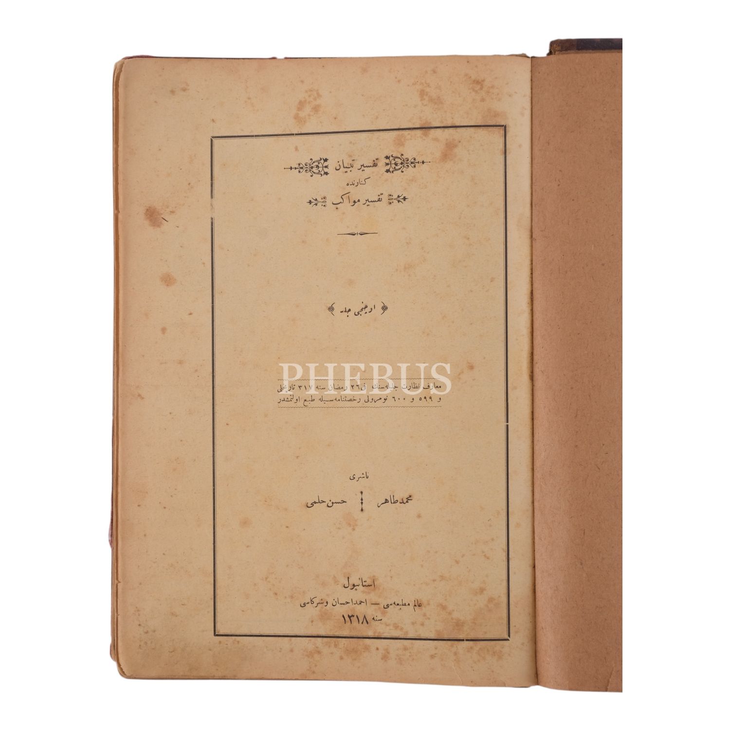 TEFSÎR-İ TİBYÂN (KENARINDA TEFSÎR-İ MEVÂKİB), 2 kitap 4 cilt, Ayıntâbî Mehmed Efendi-İsmail Ferruh Efendi, 1317, Ahter Matbaası, 357+328 sayfa, 21x28 cm...