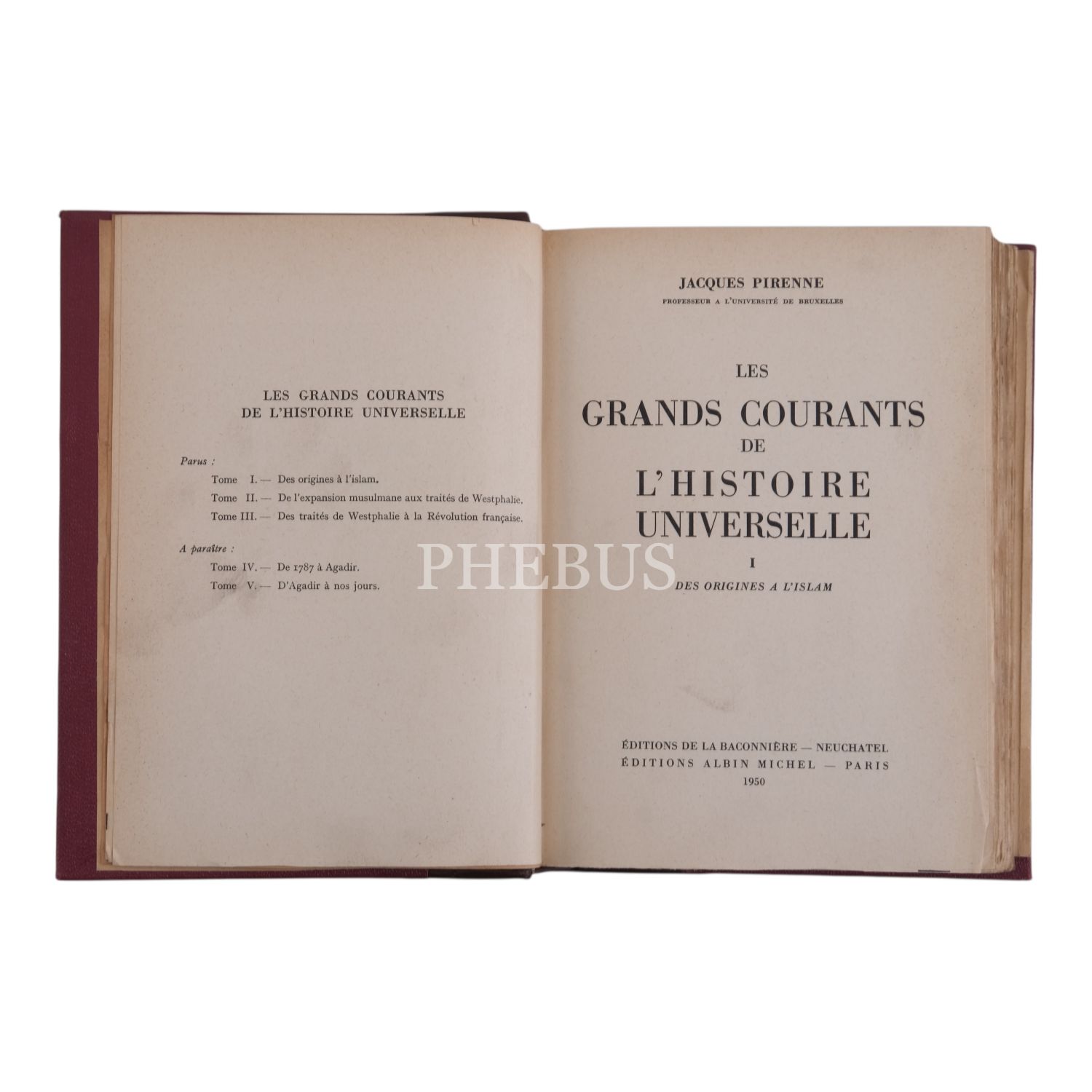LES GRANDS COURANTS DE L´HISTOIRE UNIVERSELLE (Des Origines A L´Islam) (5 Cilt), Jacques Pirenne, 1950, Editions de la Baconniere, 16x23 cm...