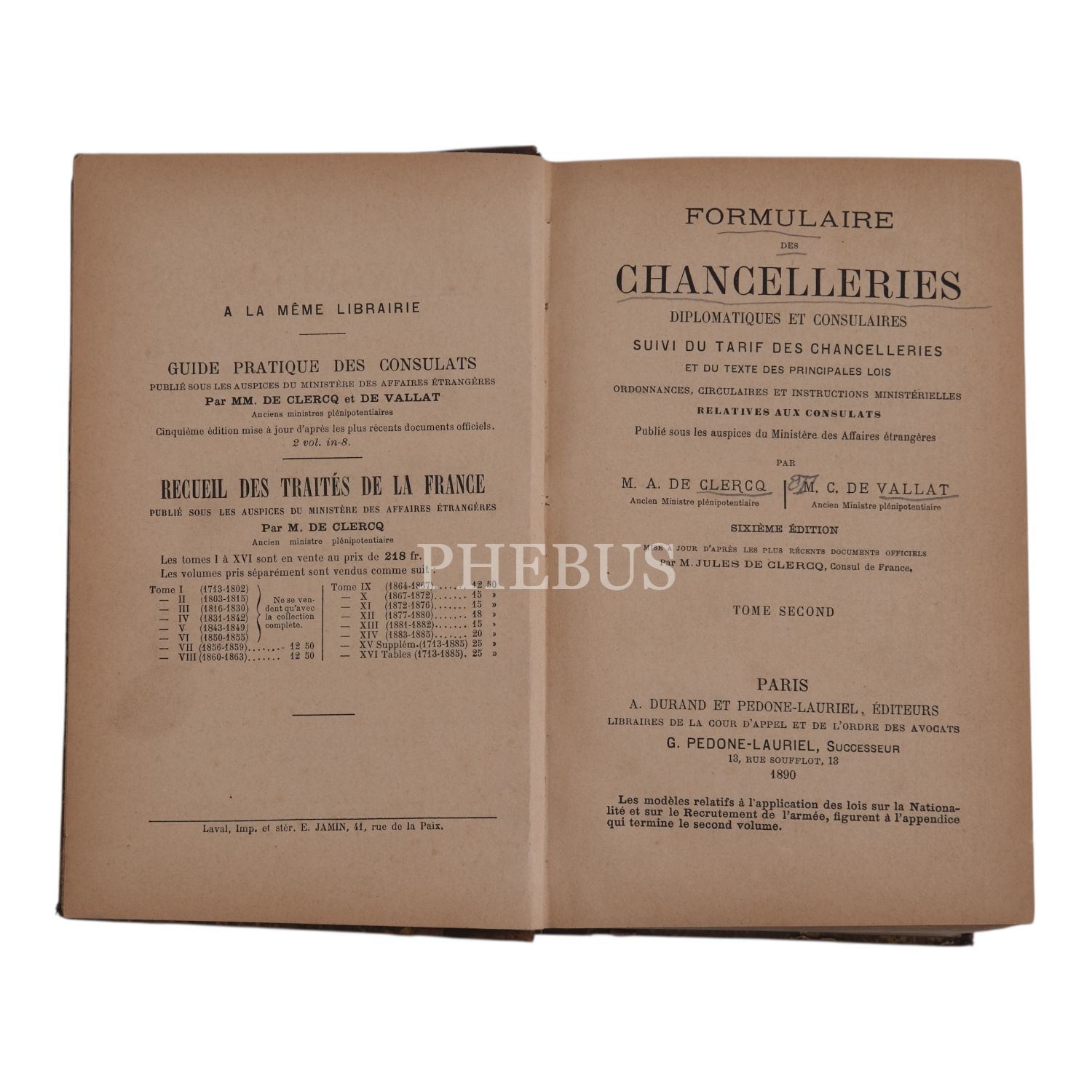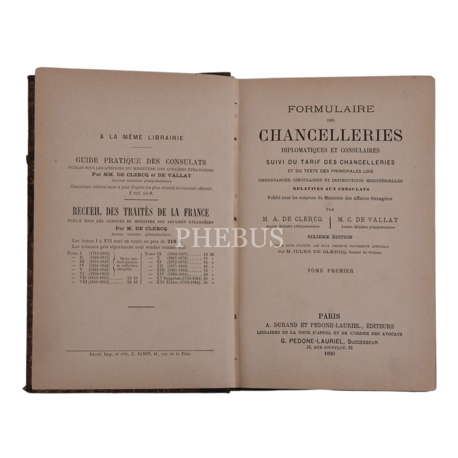 FORMULAIRE DES CHANCELLERIES DIPLOMATIQUES ET CONSULAIRE, A. A. De Clercq - M. C. De Vallat, 1890, A. Durant Et Pedone-Lauriel (Paris), 14x21 cm...