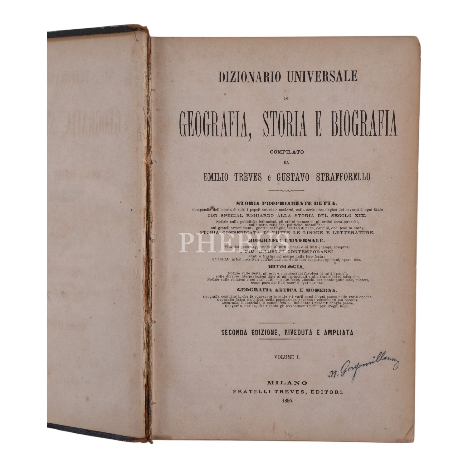 DIZINARIO UNIVERSALE DI GEOGRAFIA, STORIA E BIOGRAFIA, Emilio Treves - Gustavo Strafforello, 1880, Fratelli Treves, Editori (Milano), 18x25 cm...