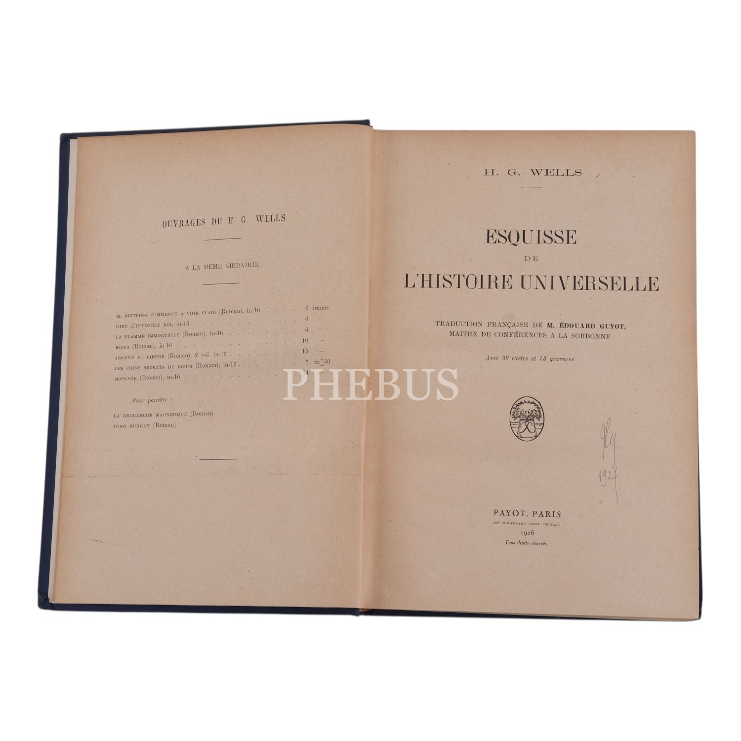 ESQUISSE DE L´HISTOIRE UNIVERSELLE, H. G. Wells, 1926, Payot (Paris), 580 sayfa, 20x28 cm...