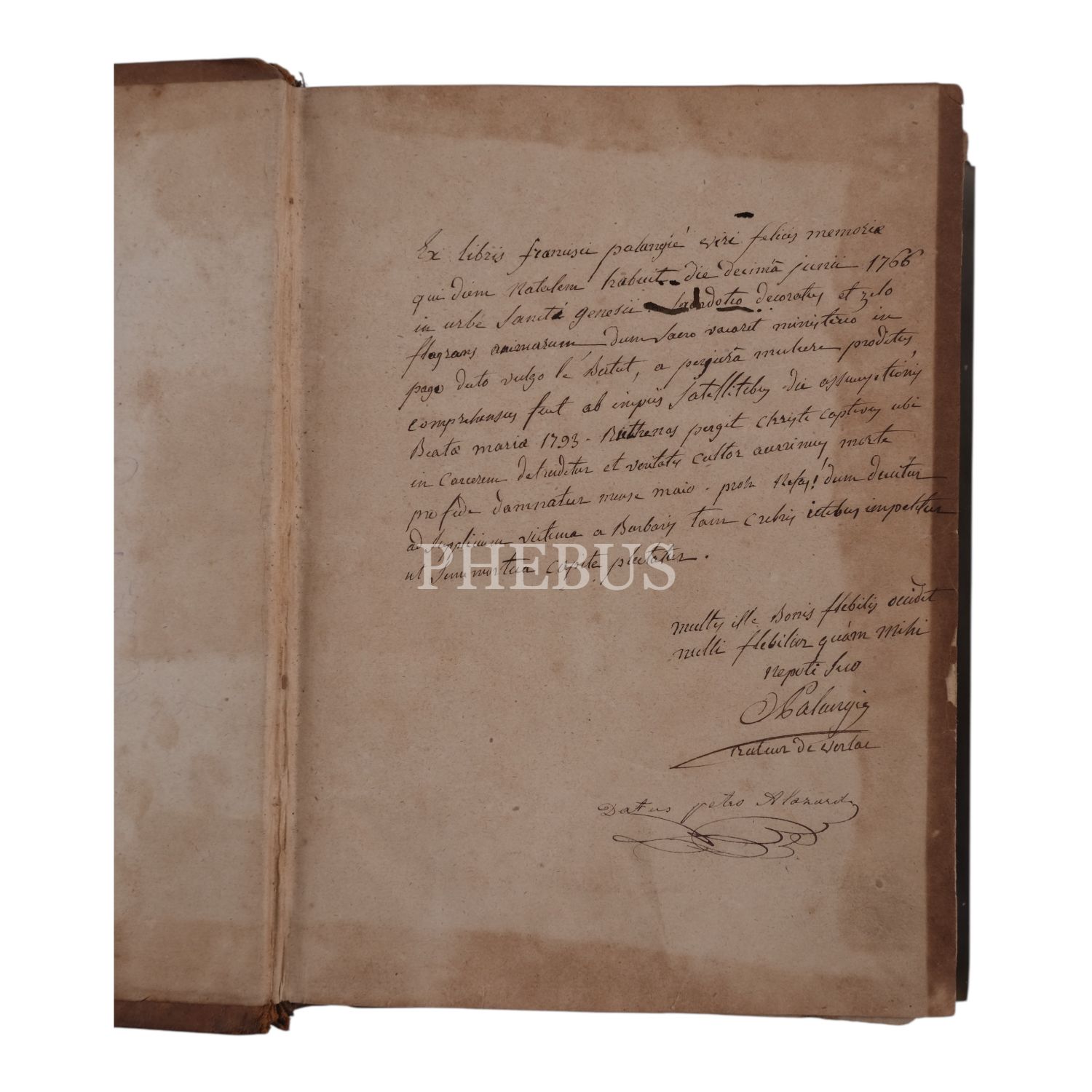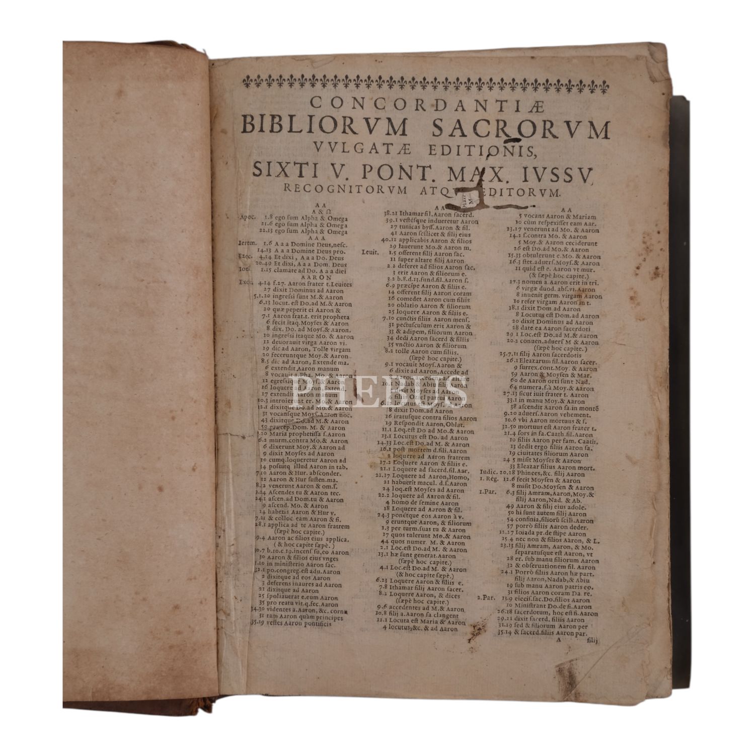Vulgata İncili´ne göre Kutsal Kitap’taki kelimelerin ve pasajların karşılaştırmalı indeksini sunan bir referans eseridir. İlk sayfasında 1766 tarihinde el ile kaleme alınmış bir ex-libris (temellük) yazısı mevcuttur.