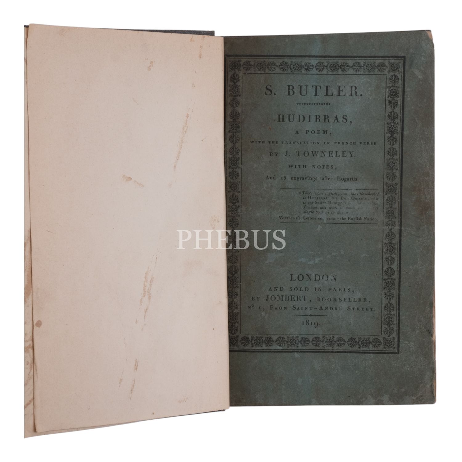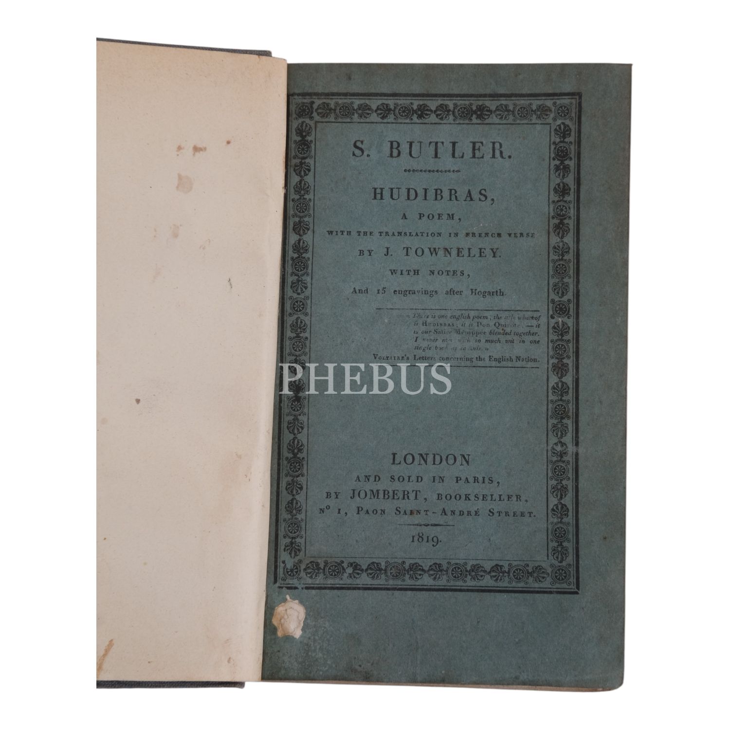 HUDIBRAS A POEM (3 Cilt), S. Butler, 1819, By Jombert, Bookseller (Londra), 11x18 cm...