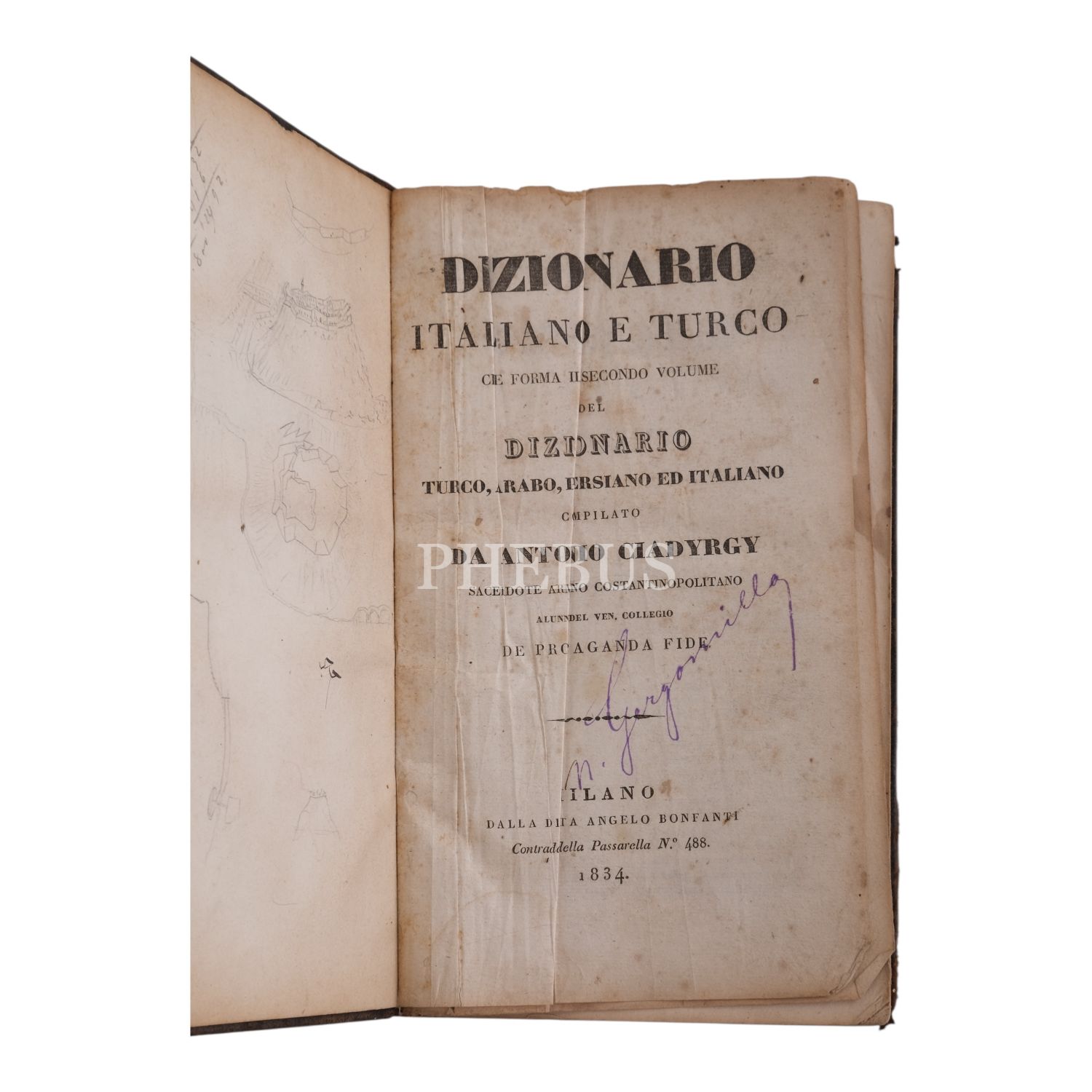 DIZIONARIO ITALIANO E TURCO, 1834, Dalla Dıtta Angelo Bonfati, 735 sayfa, 14x23 cm...