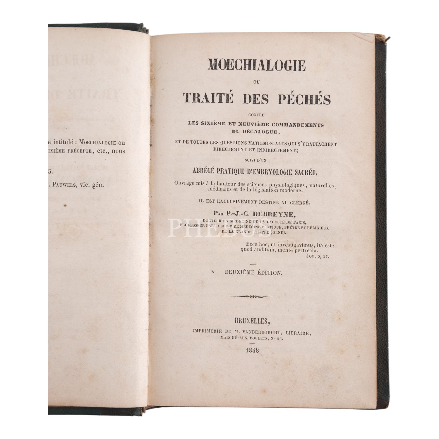 MOECHIALOGIE OU TRAITE DES PECHES, P. J. C. Debreyne, 1848, Imprimerie De M. Vanderborght, Librairie (Bruxelles), 450 sayfa, 12x18 cm...