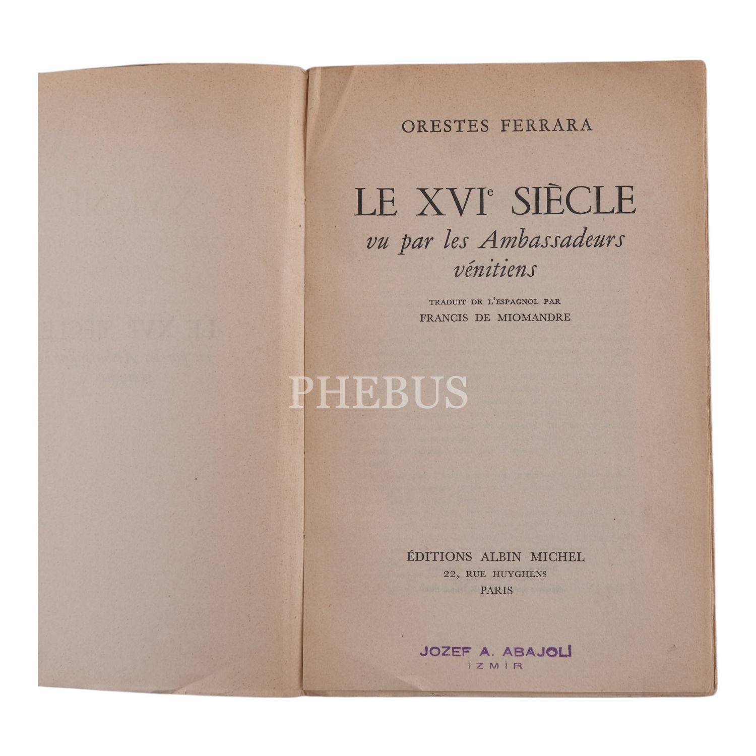 LE XVI SIECLE VU PAR LES AMBASSADEURS VENITIENS, Orestes Ferrara, 1954, Editions Albin Michel (Paris), 596 sayfa, 14x21 cm...