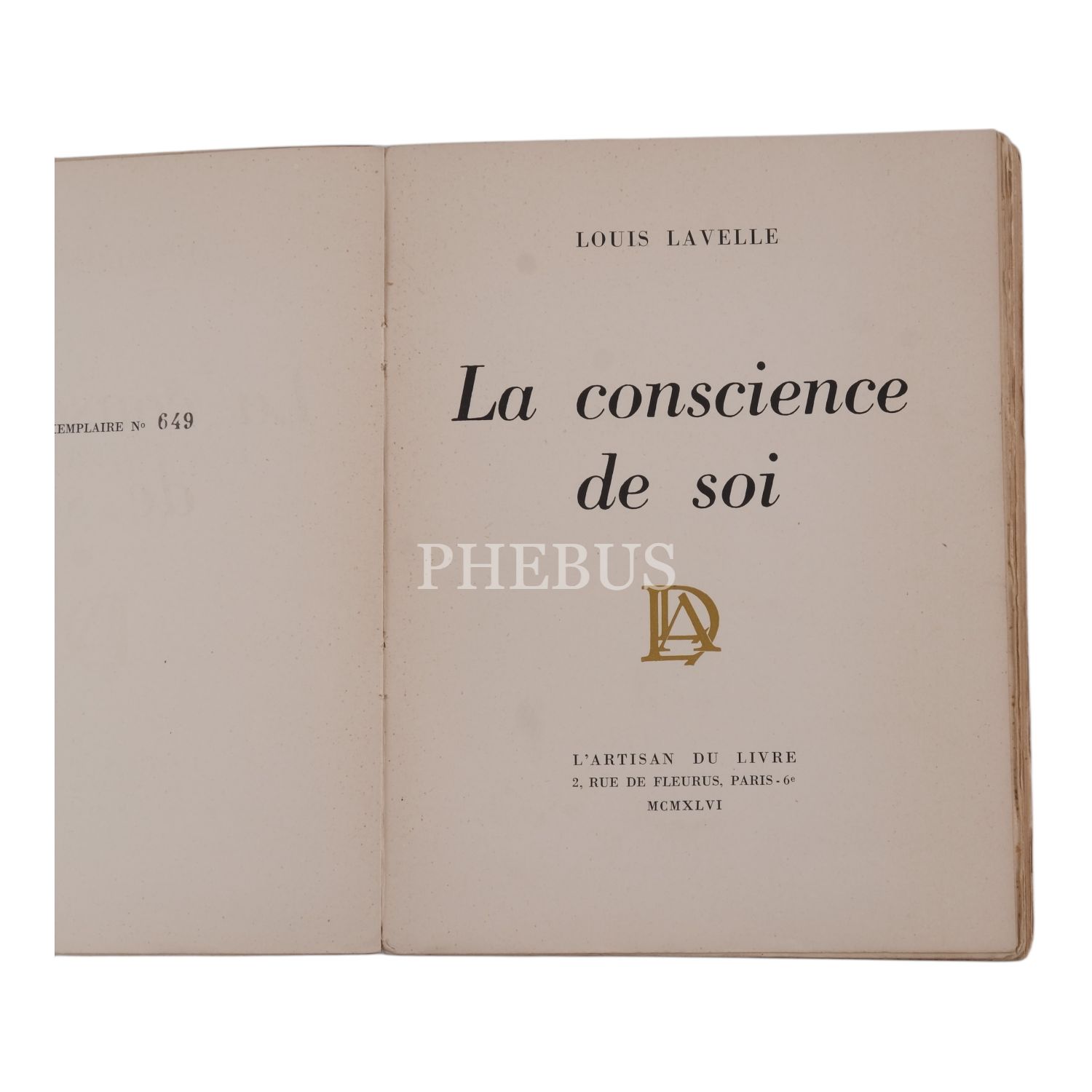 LA CONSCIENCE DE SOI, Louis Lavelle, 1946, L´Artisan Du Livre (Paris), 237 sayfa, 17x23 cm...