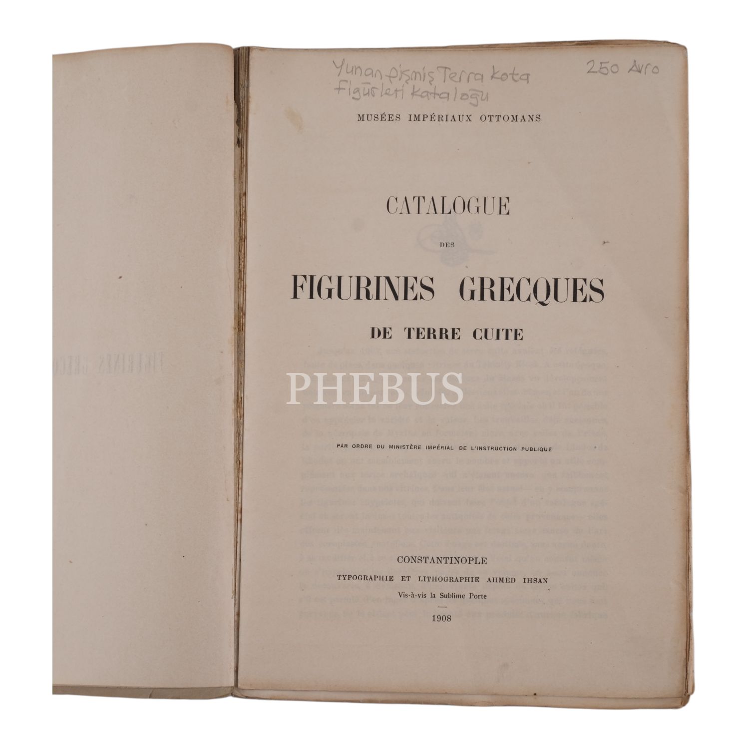 CATALOGUE DES FIGURINES GRECQUES DE TERRE CUITE, 1908, Musees Imperiaux Ottomans, Typographie et Lithographie Ahmed İhsan, 663 sayfa + 15 planş, 18x25 cm...
