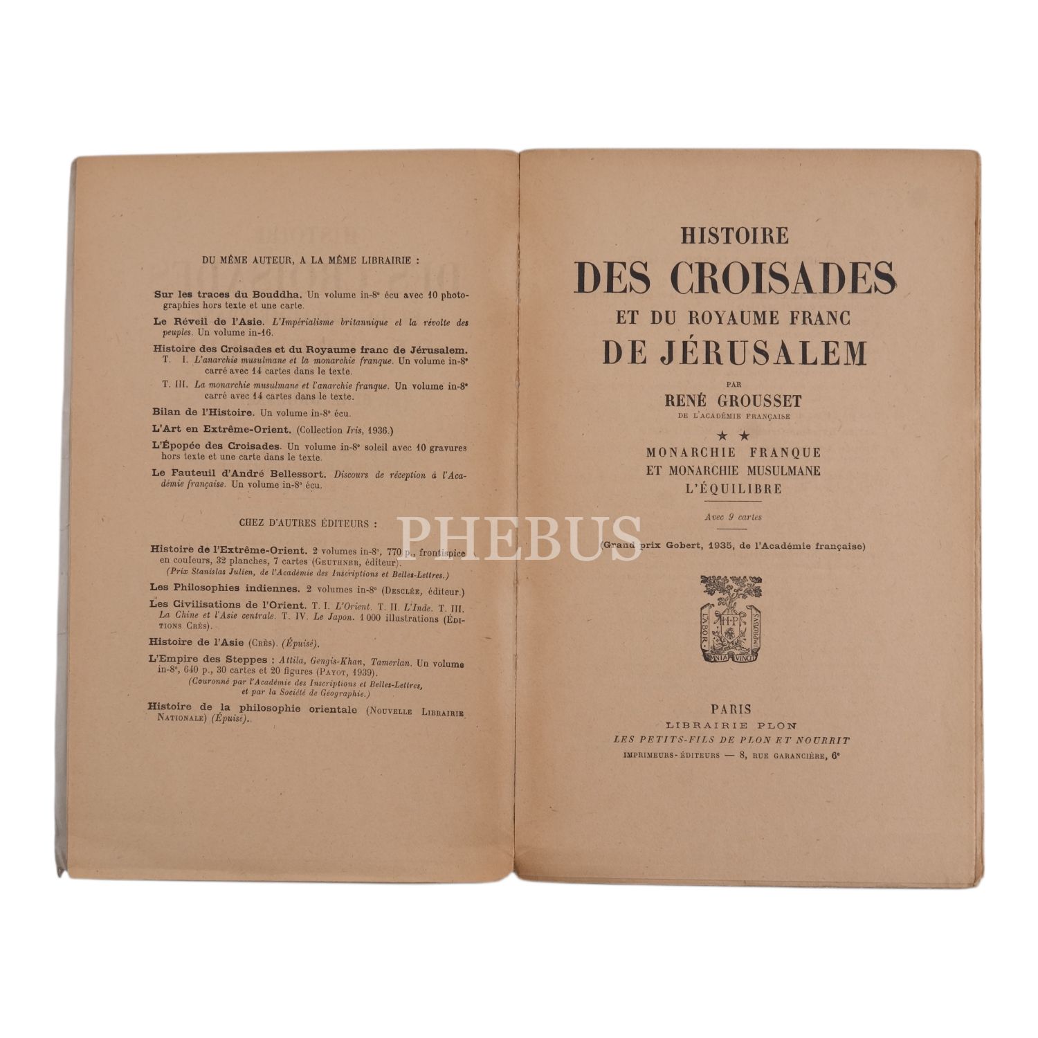 HISTOIRE DES CROISADES ET DU ROYAUME FRANC DE JERUSALEM(1, 2 ve 3. Cilt), Rene Grousset, 1935, Librairie Plon, 15x23 cm...