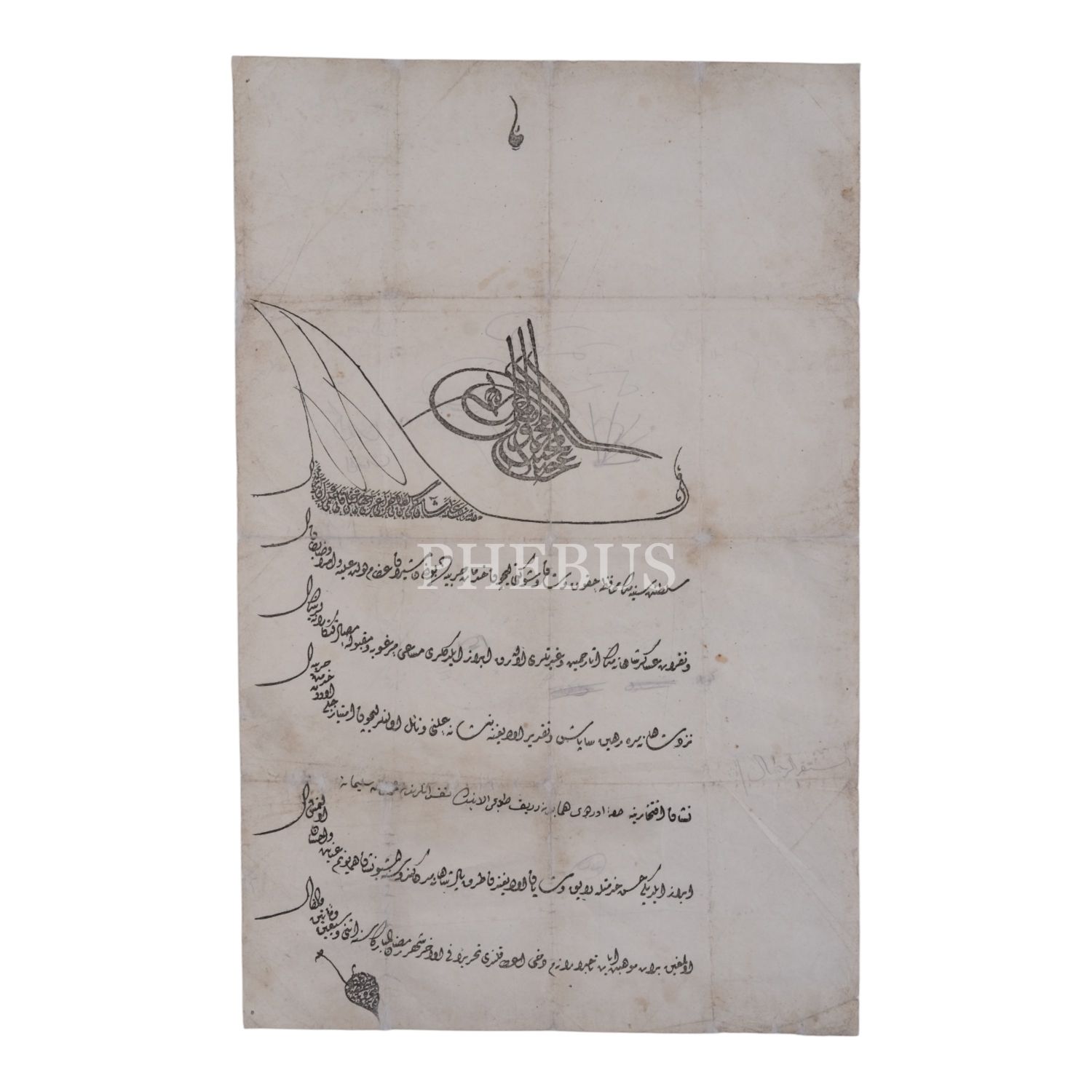 Baskı Sultan Abdülmecid tuğralı Nişân-ı Hümâyun beratı, 1272 tarihli, 24x38 cm...