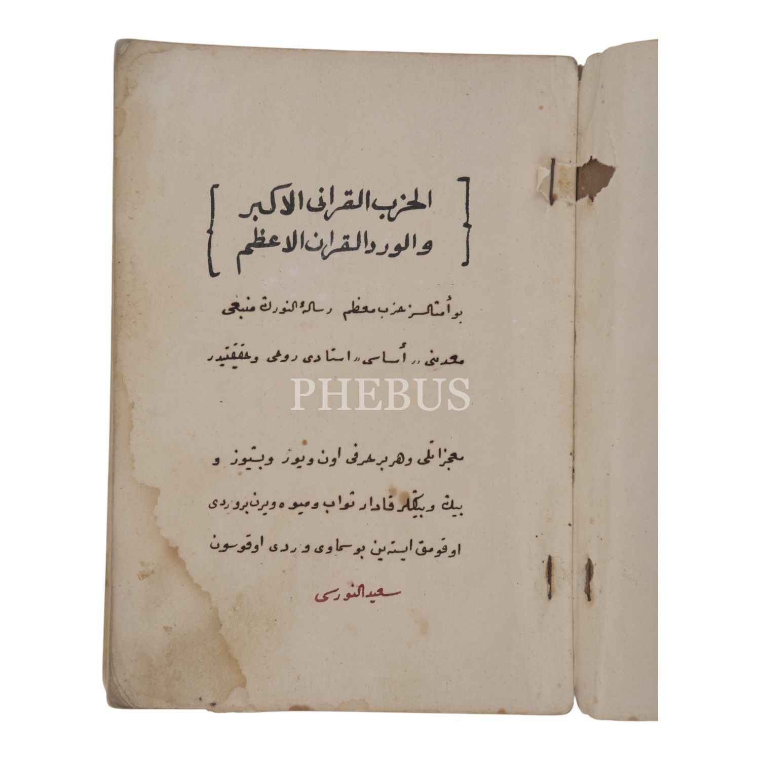 ELHİZBÜ´L-KURÂNİYÜ´L-EKBER VE´L-VİRDÜ´L-KUR´ÂNU´L-AZAM, Said Nursî, Ahmed İhsan Matbaası, 155 sayfa, 14x20 cm...
