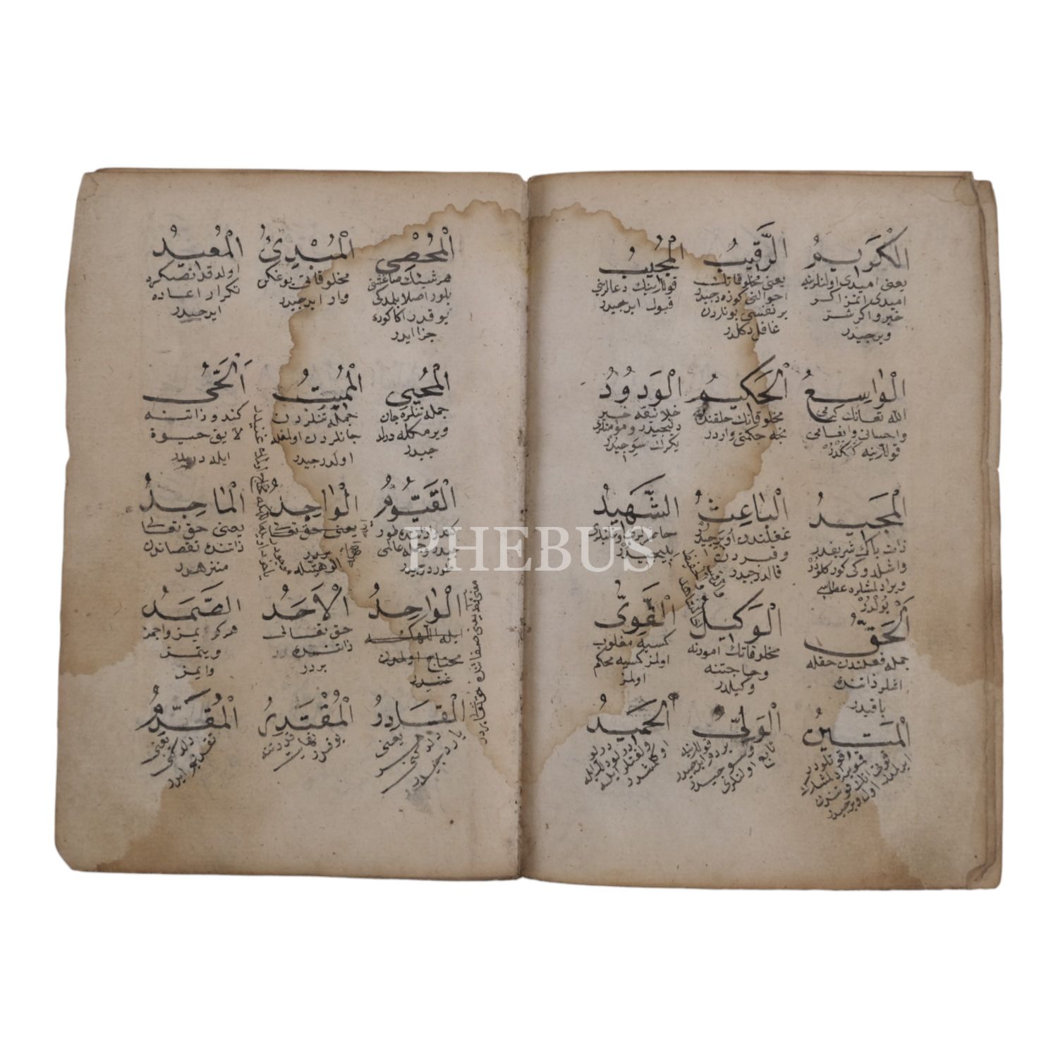 Esmâ-i Hüsnâ´nın ve bazı duaların bulunğu risâle. Son sayfadaki velâdet kaydındaki ilk tarih 1216´dır.