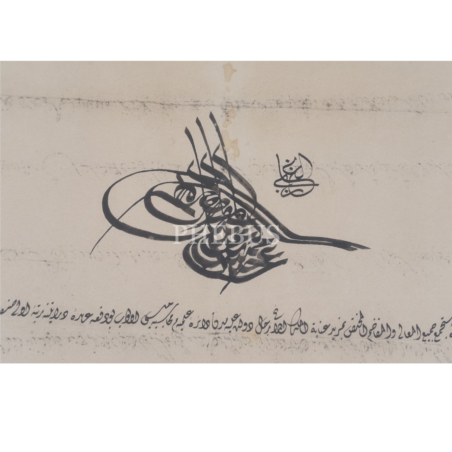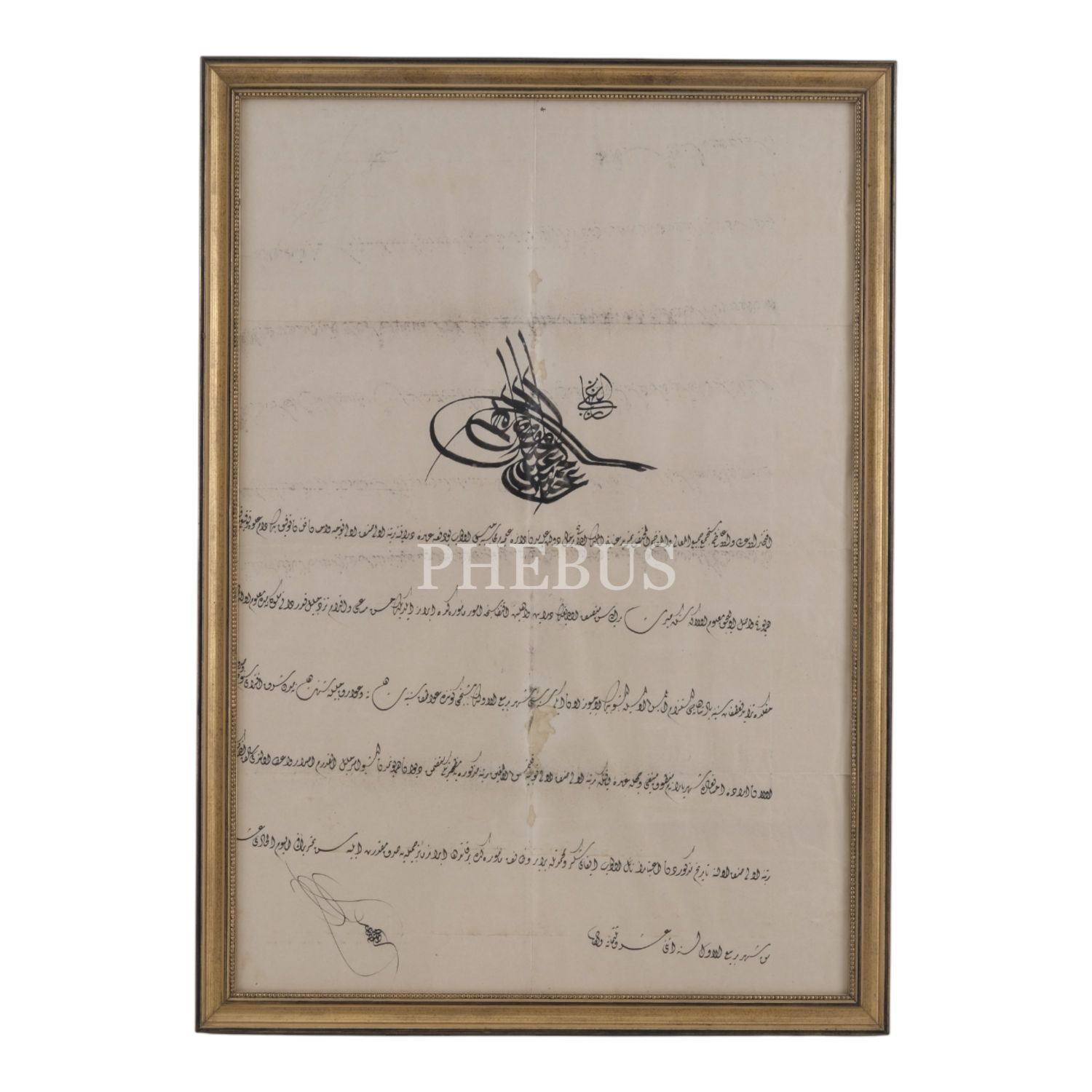 El çekme Sultan 2. Abdülhamid tuğralı berat, 1312 tarihli, çerçeve içi ölçü: 56x82 cm...