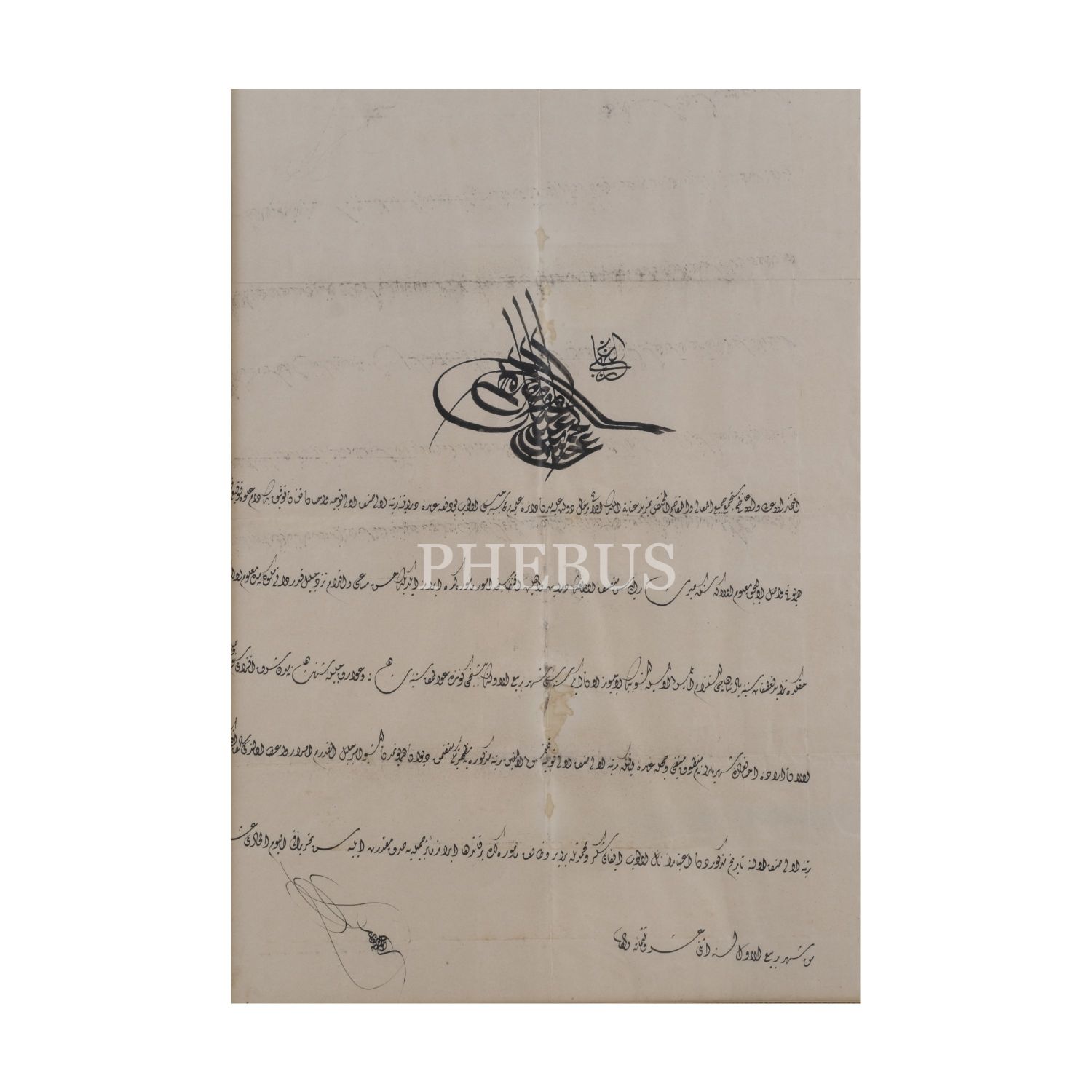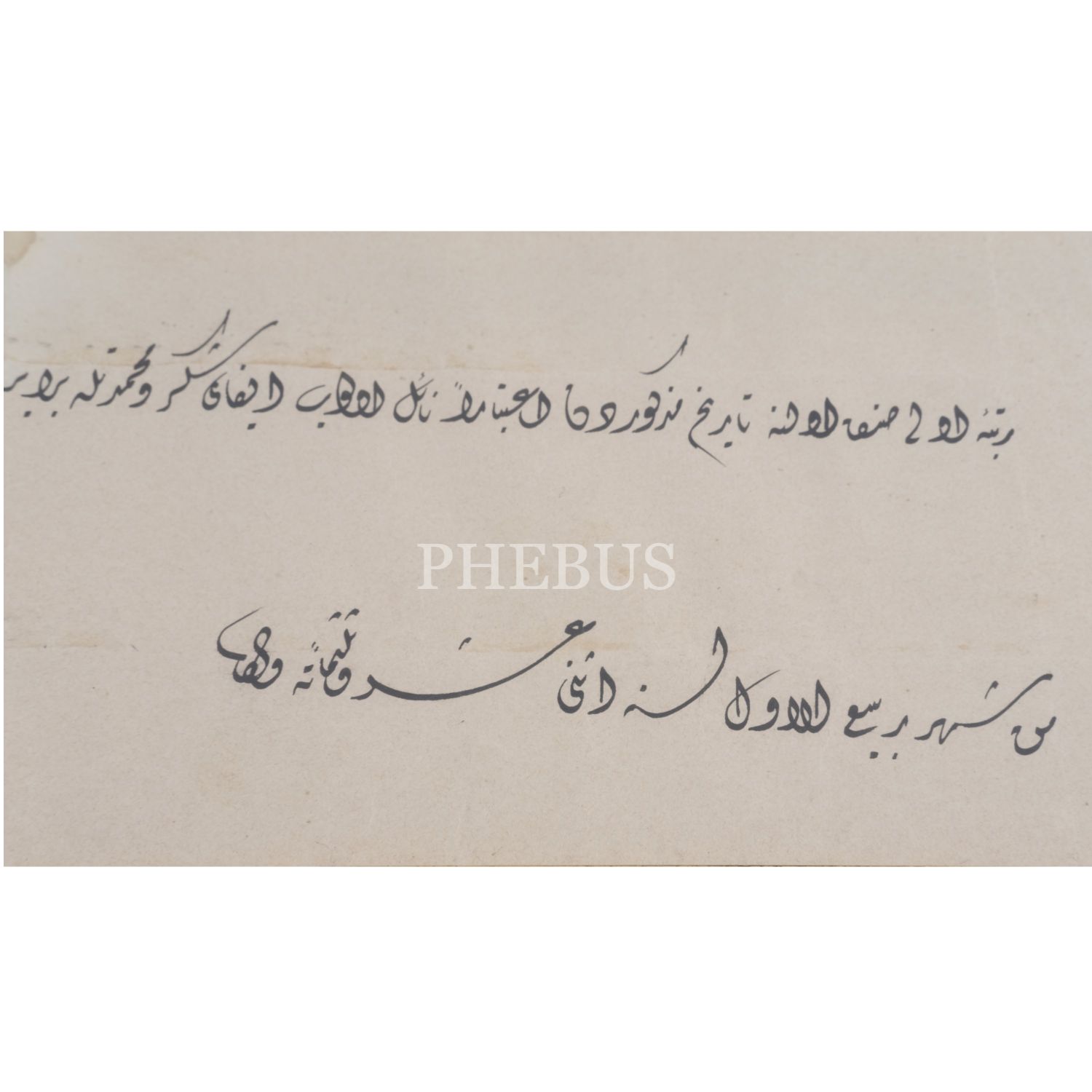 Daire-i ilmiye muhasebecisi Tevfik Bey´in "rütbe-i ûlâ sınıf-ı evvel" ünvanı almasına dair berat.