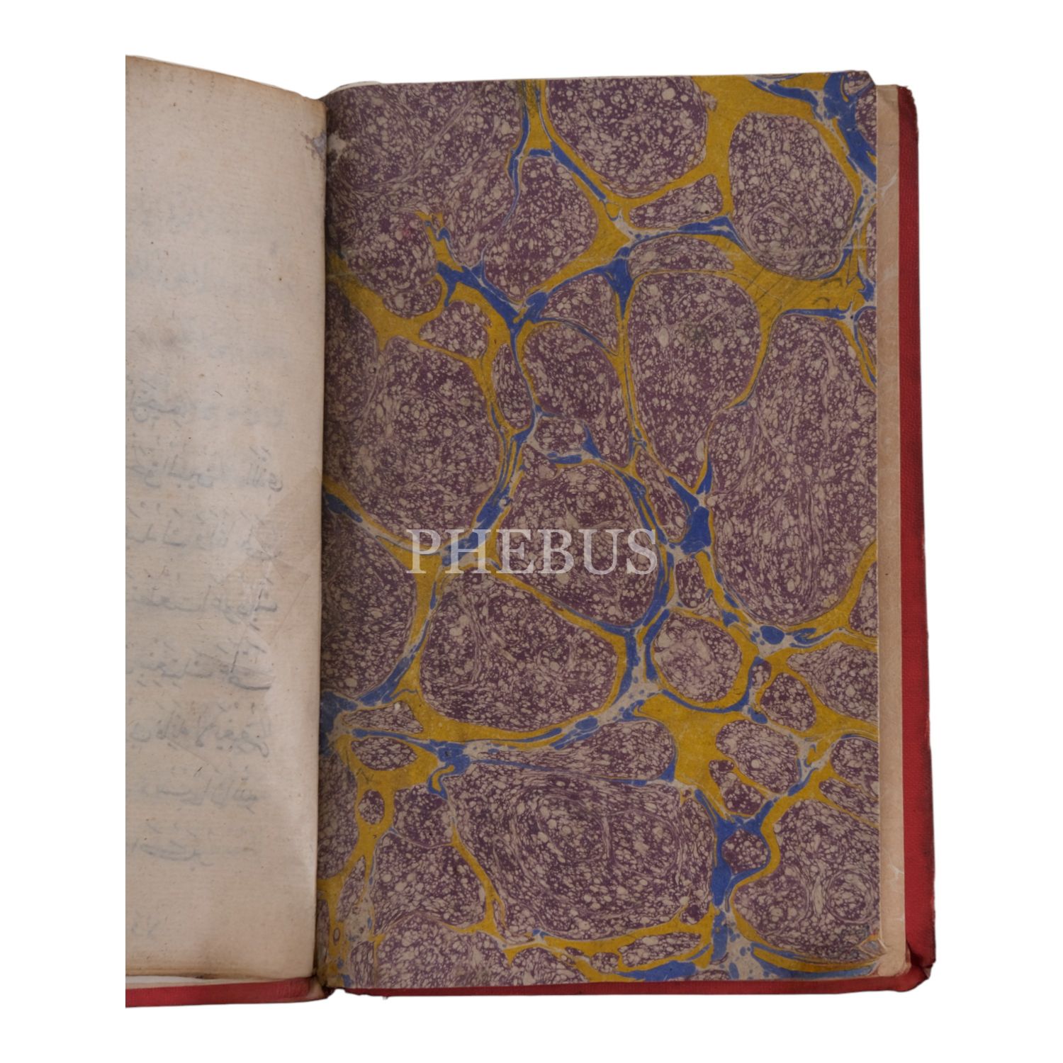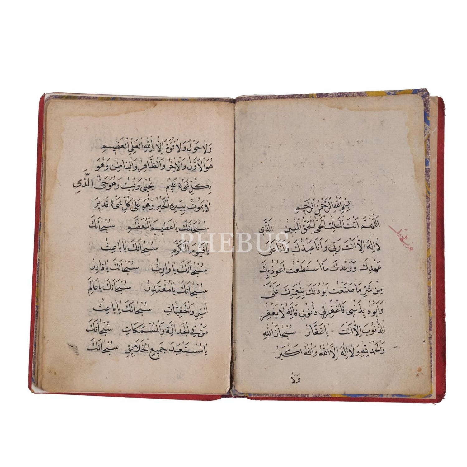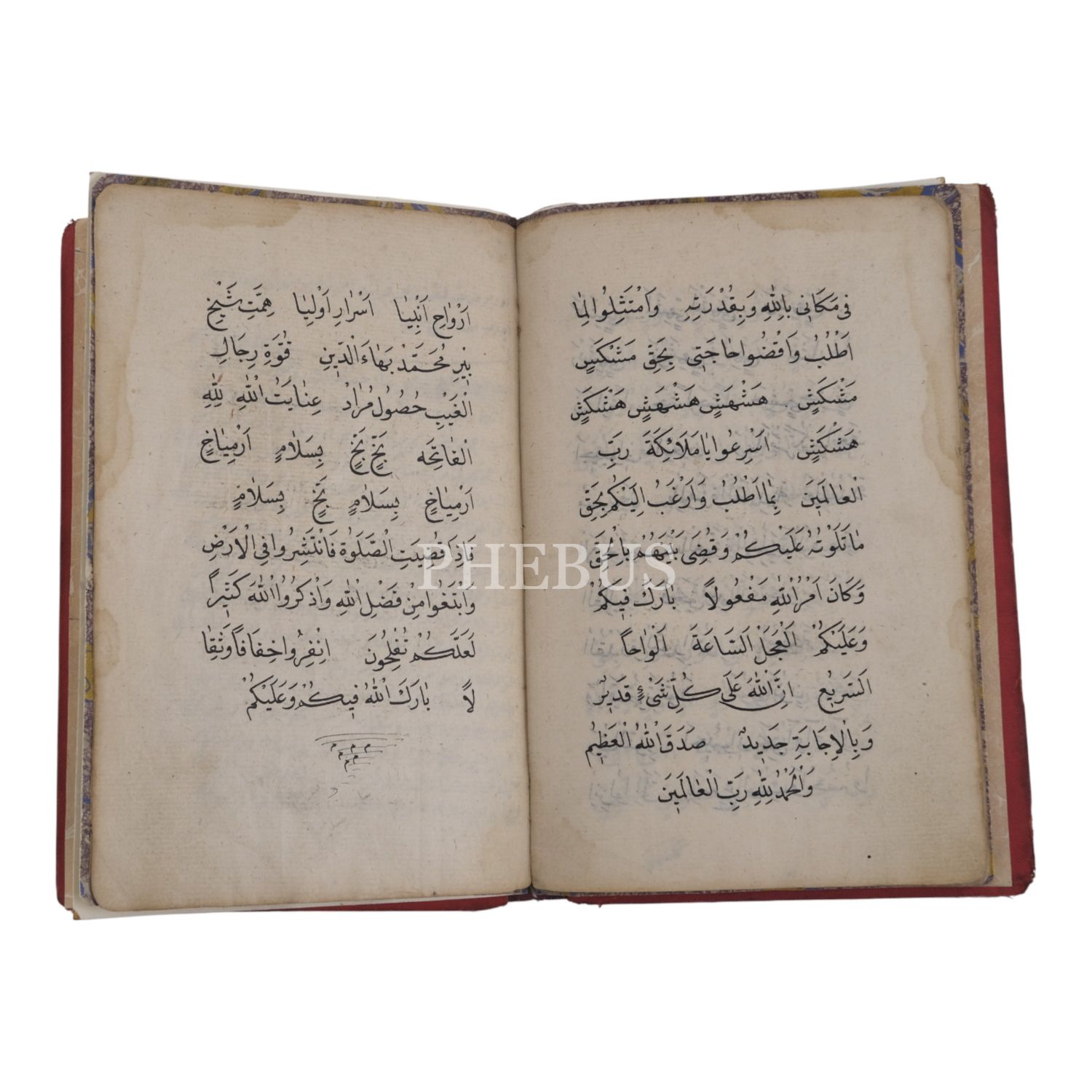 Nakşibendî tarikatı mensupları için hazırlanmış evrad. Reşad tuğralı kırmızı mükâfat cildinde. İç kapakları kalın ebru kağıdıdır. Metnin sonundaki "Evrâd-ı şerif-i Nakşibendî kıraat eyledikde bu minvâl üzere niyet edip badehû şurû eyleye: ..." ifadesinden evradın yazılış maksadının Nakşibendî müridler için olduğunu anlıyoruz.