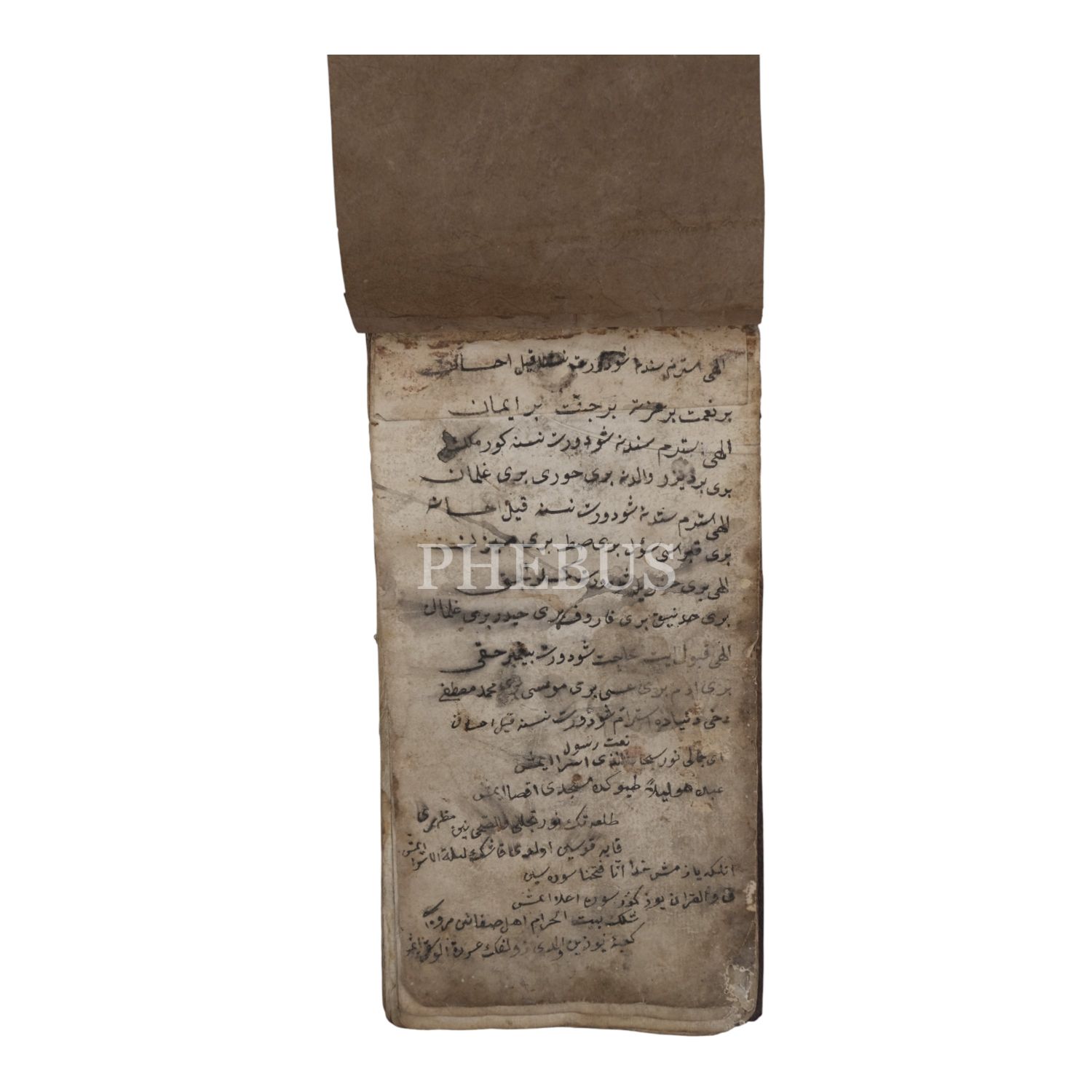 Zencerekli deri dönem cildinde. Çeşitli ilahi, türkü, dua ve alıntıların bulunduğu cönk. Eşrefoğlu, Aşık Ömer, Kara Yunus, Muhammediye gibi alıntı başlıkları yanında dualar ve bazı Arapça ibareler mevcuttur.