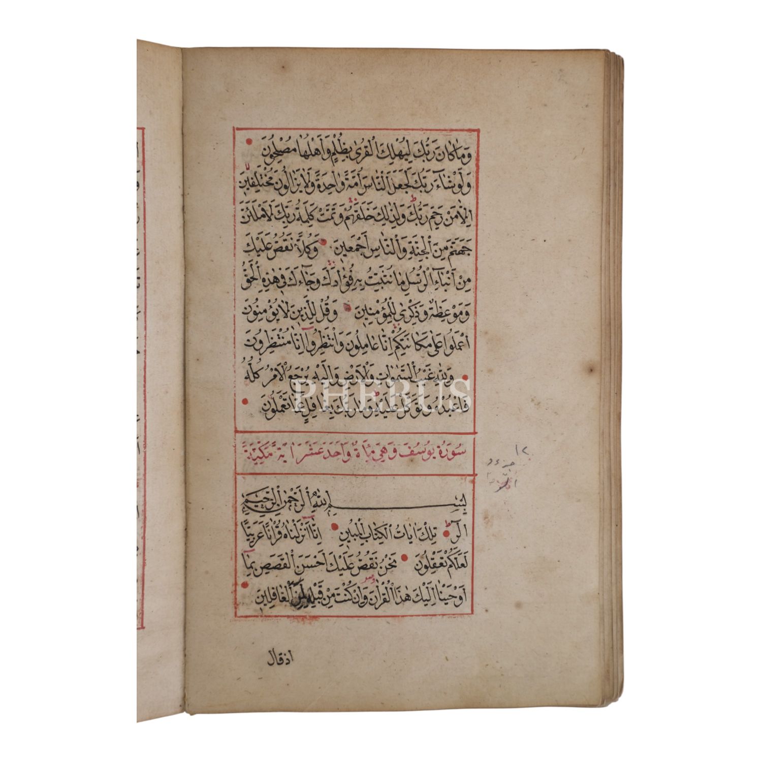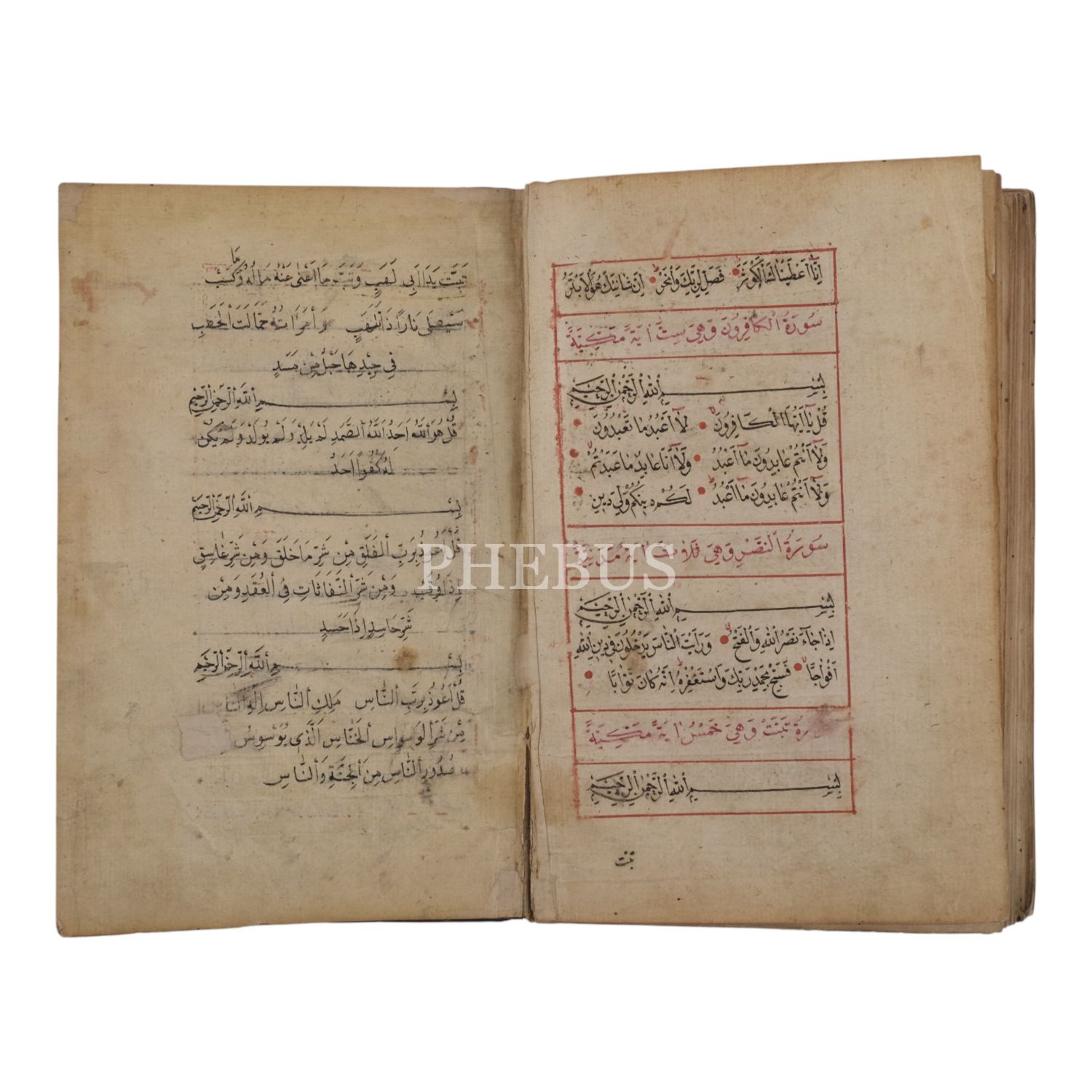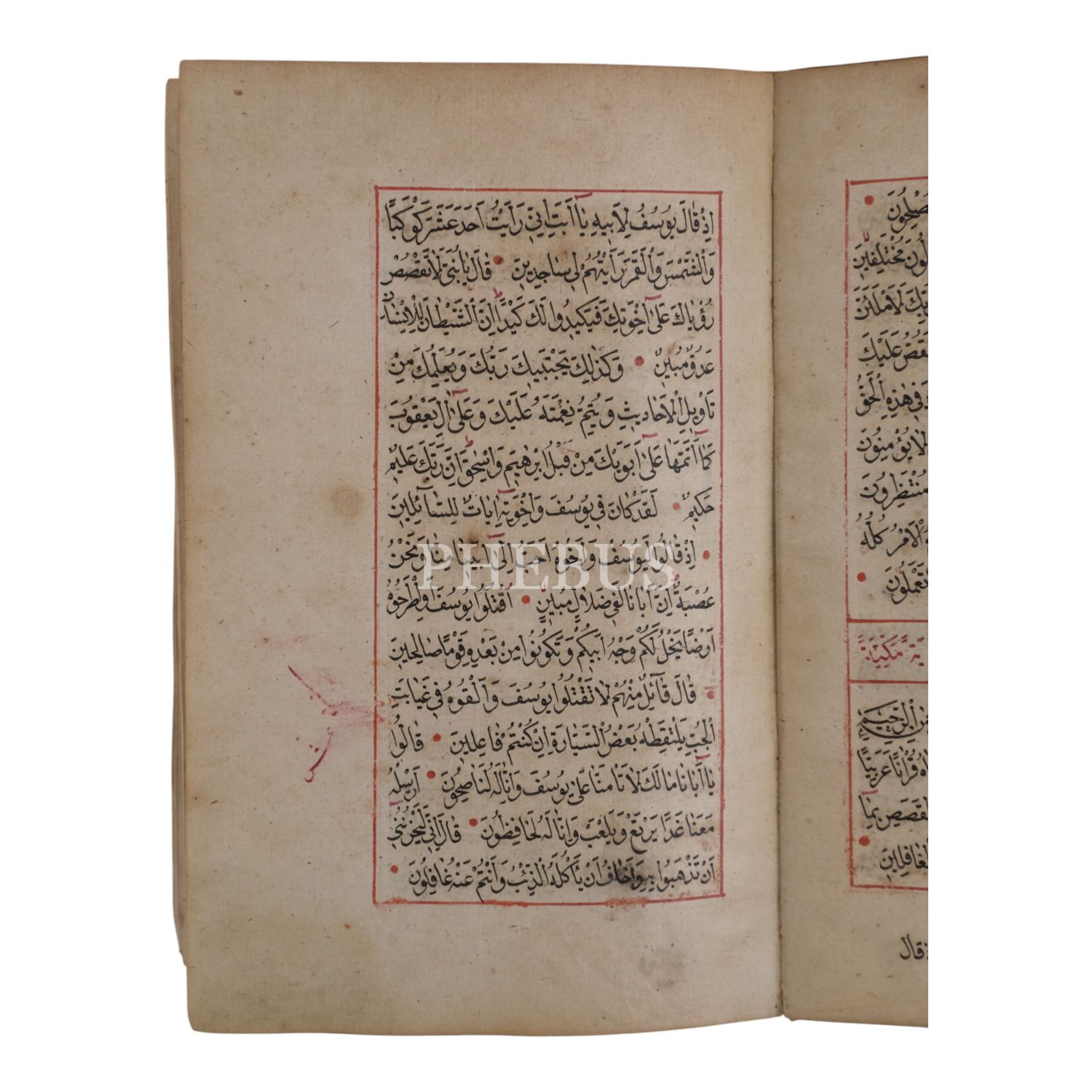 Deri dönem cildinde. Serlevhalı, kırmızı cetvelli ve kırmızı duraklı. *Baştaki formalarının ayak kısmında cüzi ayrılma vardır. Felâk-Nâs sayfası sonradan eklenmiştir.