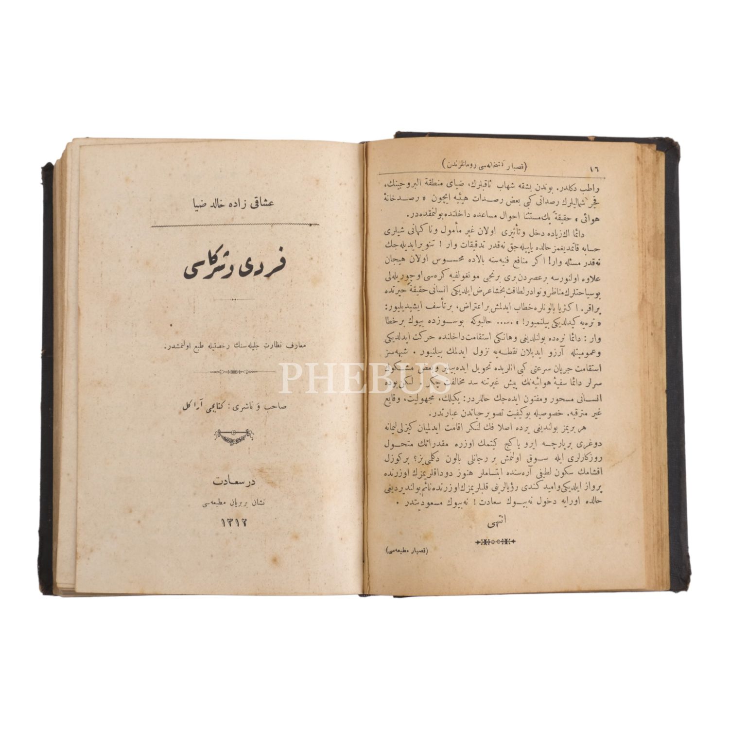 FERDİ ve ŞÜREKÂSI, Uşşâkîzâde Halid Ziya (Uşaklıgil), 1312, Nişan Berberyan Matbaası, 275 sayfa.