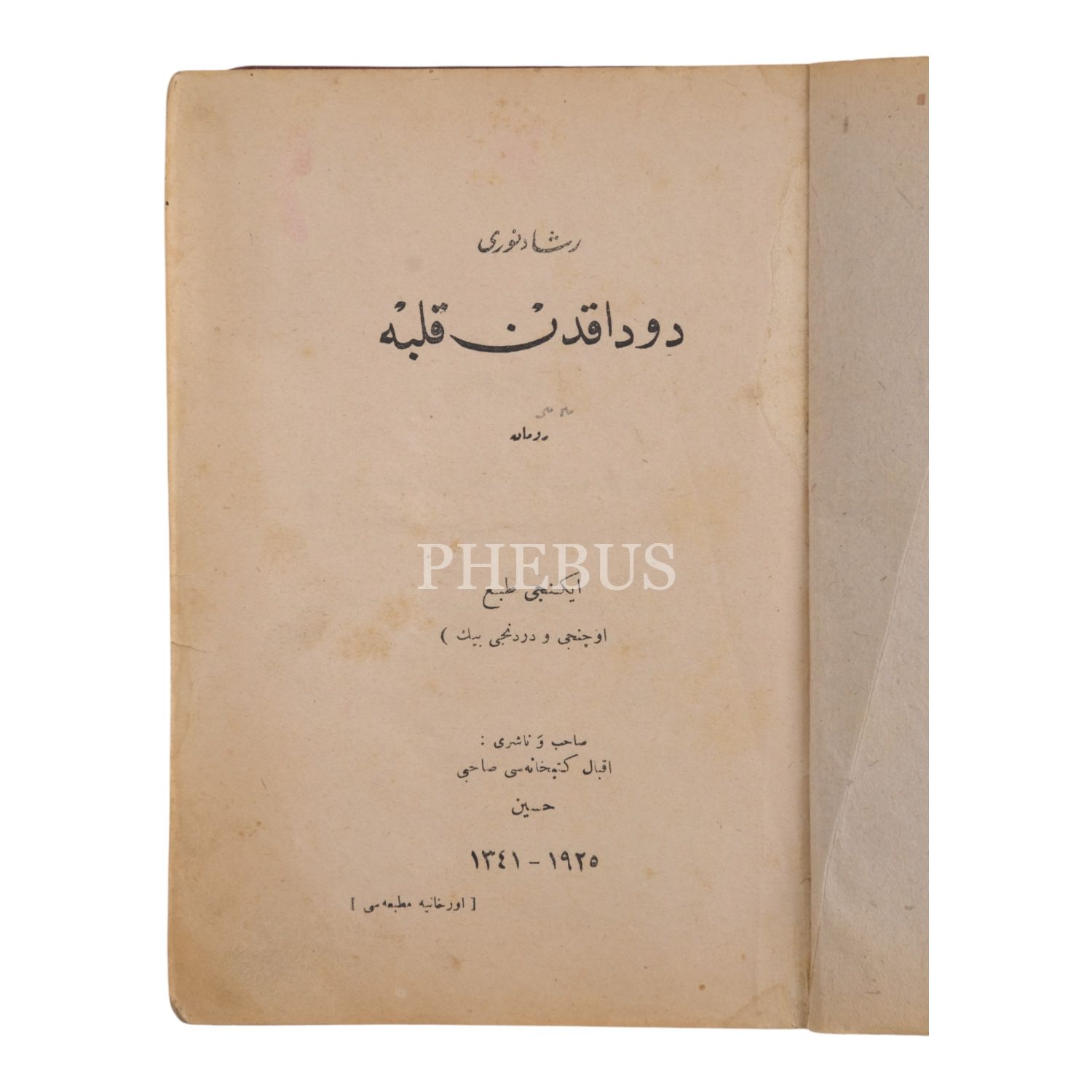 DUDAKTAN KALBE, Reşat Nuri Güntekin, 1341/1925, Orhaniye Matbaası, 398 sayfa, 15x22 cm...