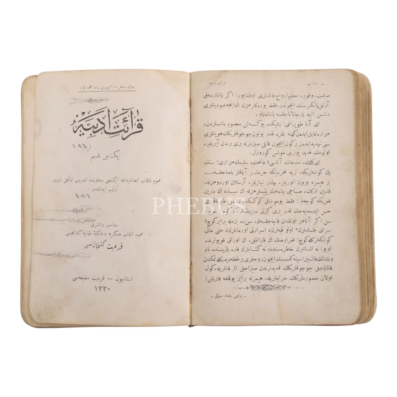 KIRÂAT-I EDEBİYE, 1-2. kısım tek kitapta, 1330, Karabet Matbaası, 160+173 sayfa, 12x18 cm...