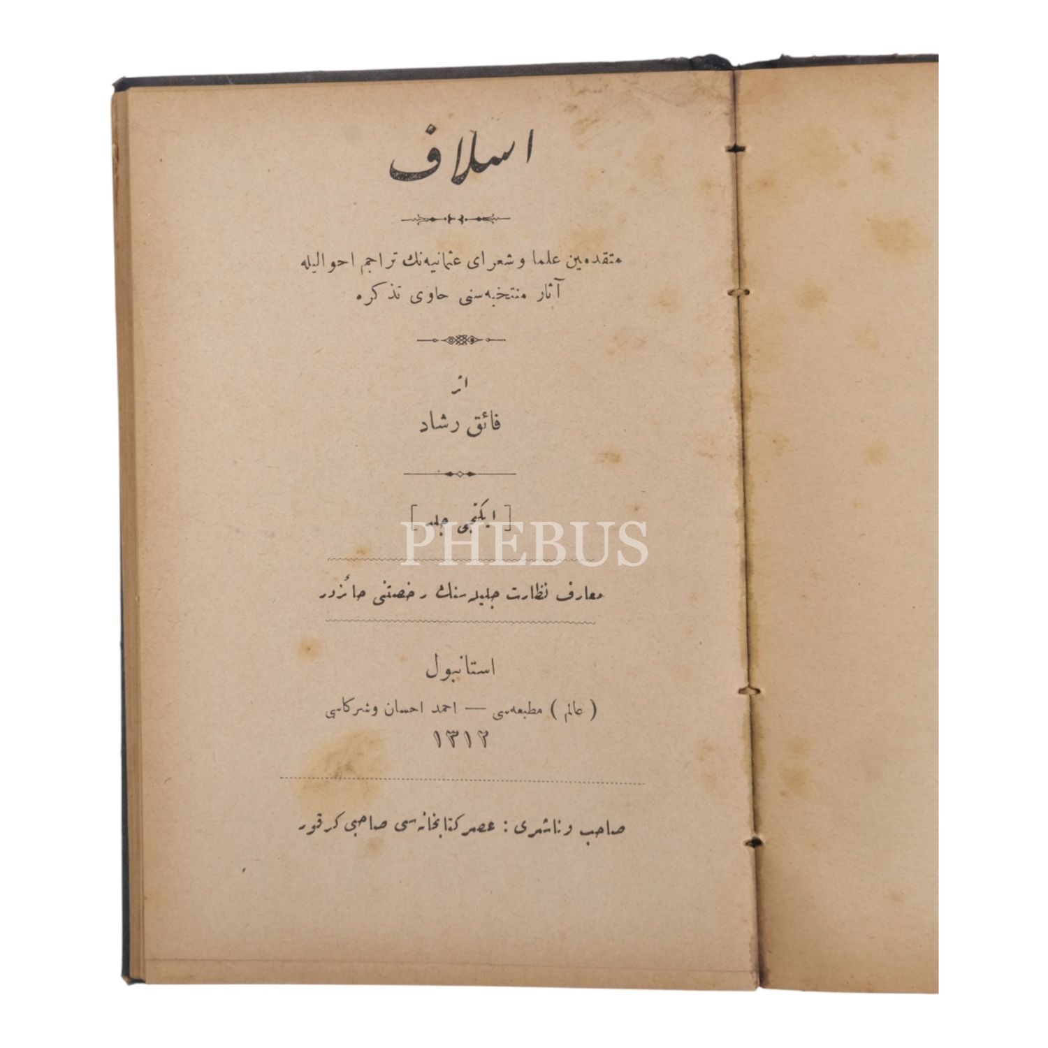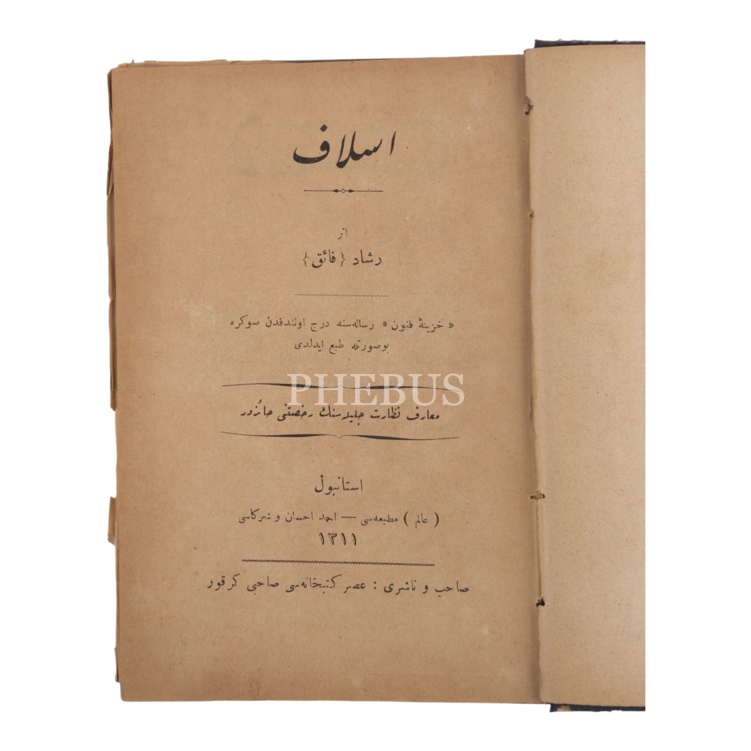 ESLÂF, iki cilt bir arada, Faik Reşad, 1311-12, Âlem Matbaası, 238+158 sayfa, 12x19 cm...