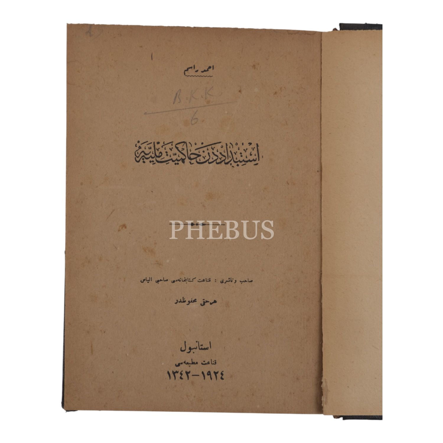 İSTİBDADDAN HÂKİMİYET-İ MİLLİYEYE, 2 cilt bir arada, Ahmed Rasim, 1923, Vatan Matbaası, 287+168 sayfa, 13x19 cm...