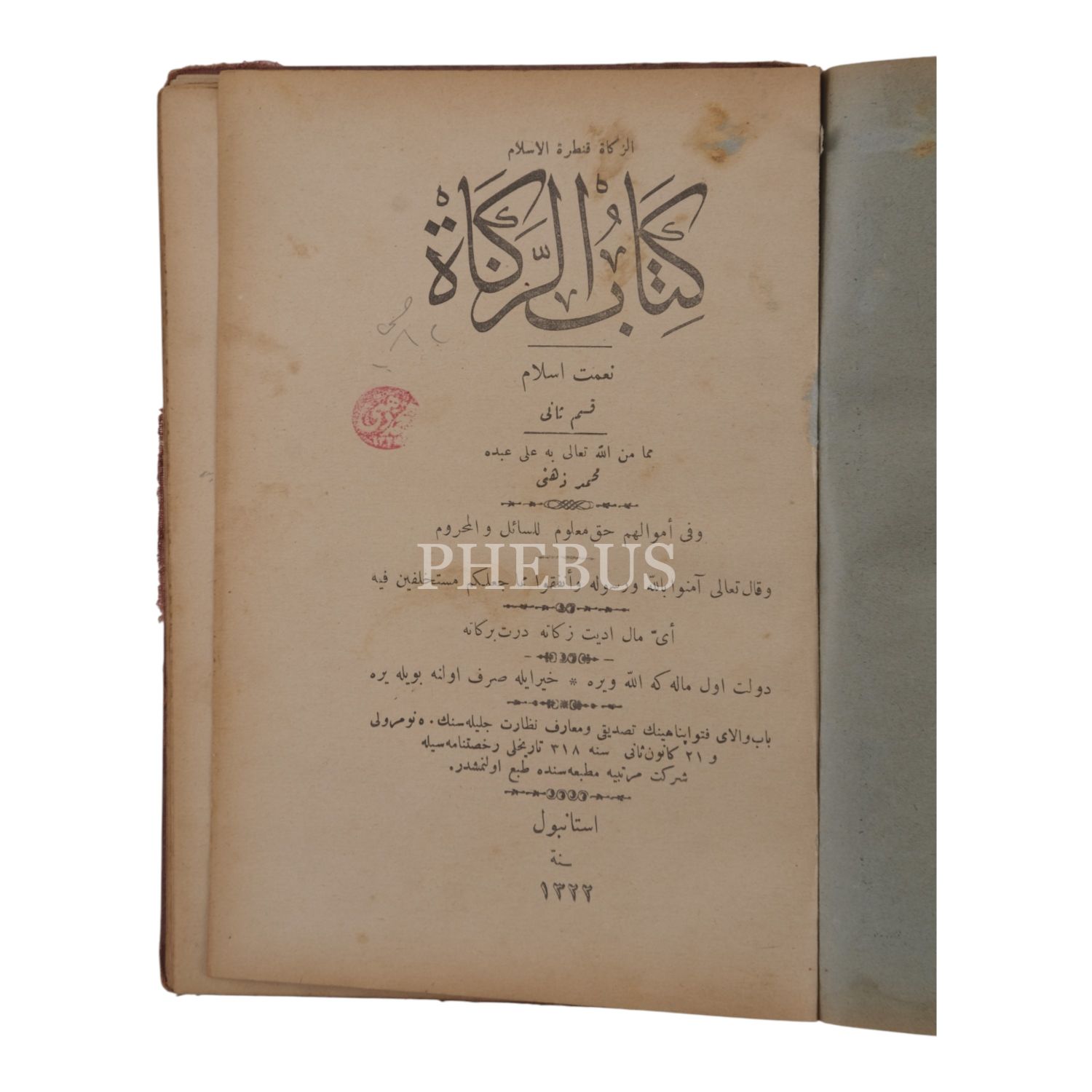 4- KİTÂBÜ´Z-ZEKÂT (NİMET-İ İSLÂM - KISM-I SÂNÎ), Mehmed Zihnî, 1322, 46 sayfa.