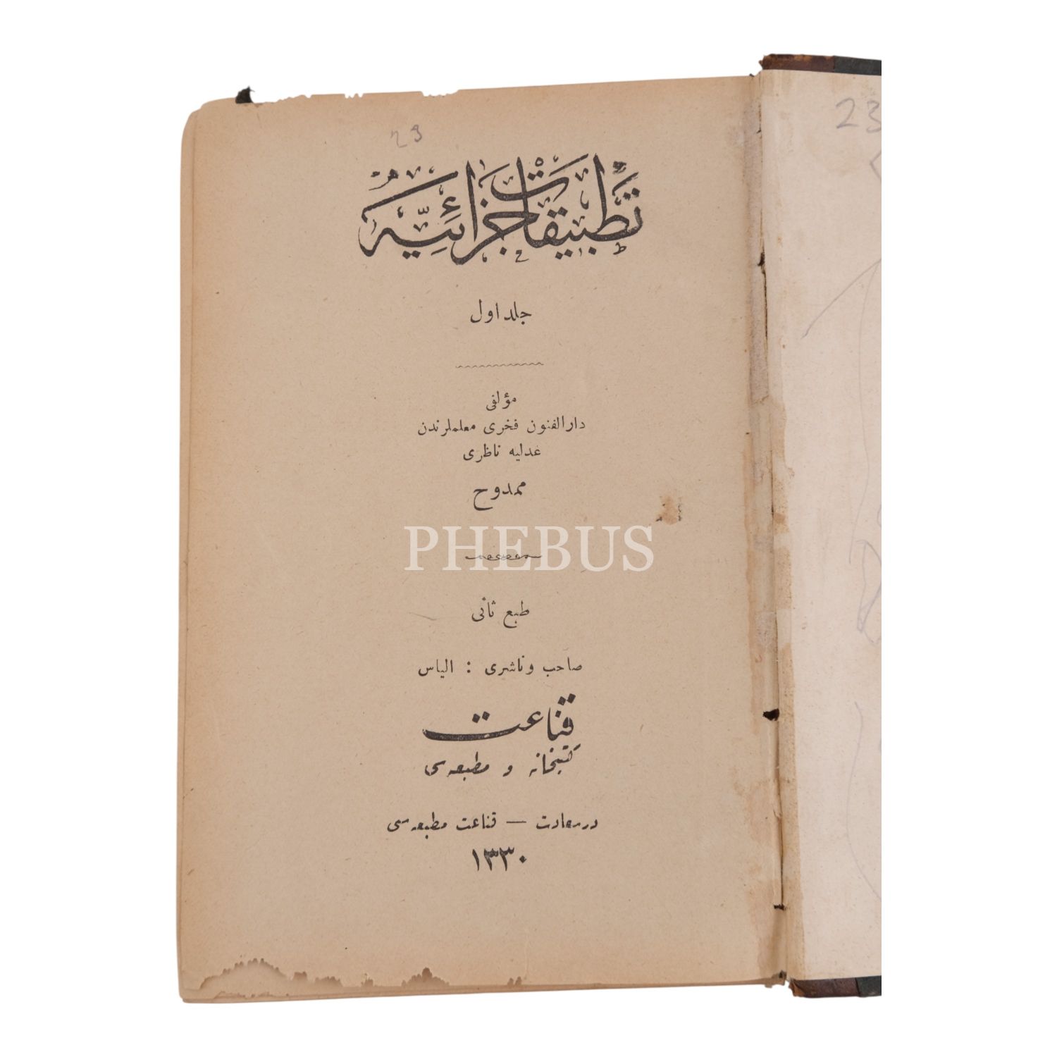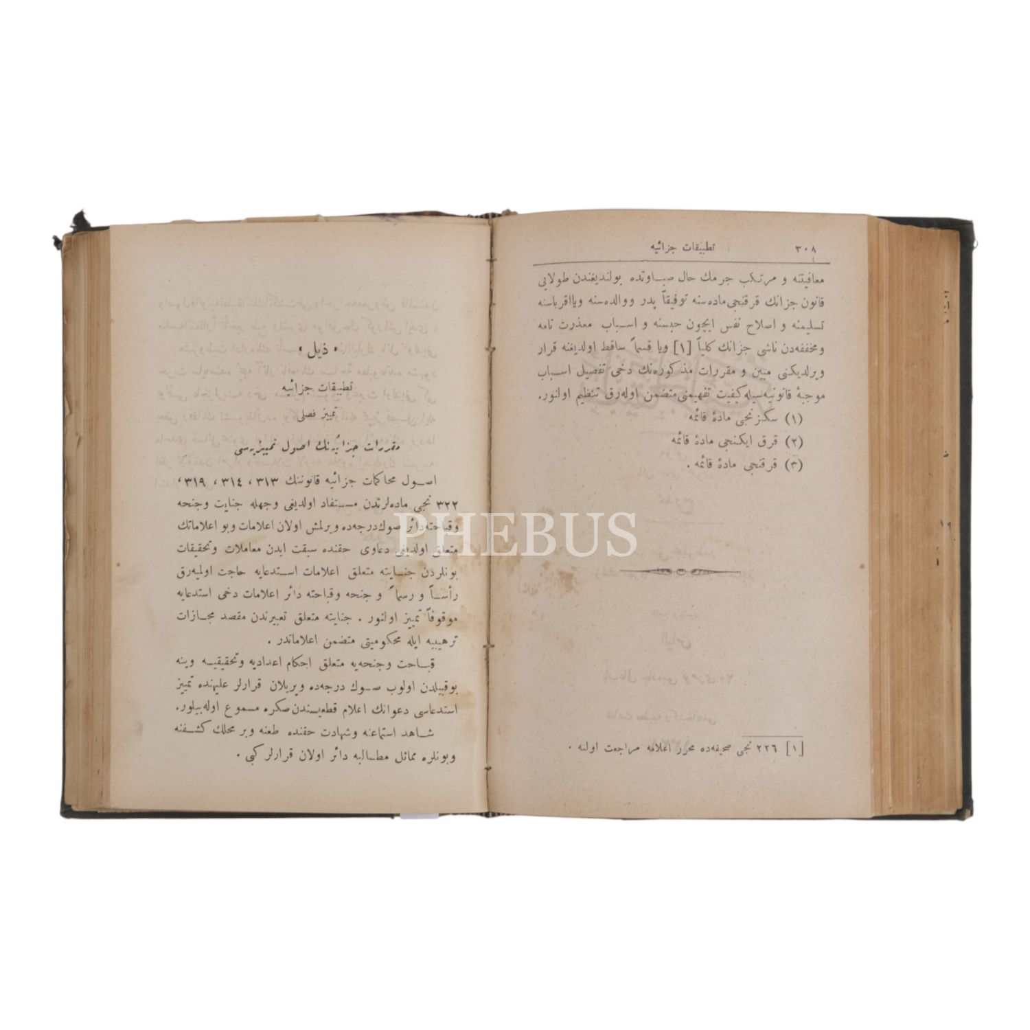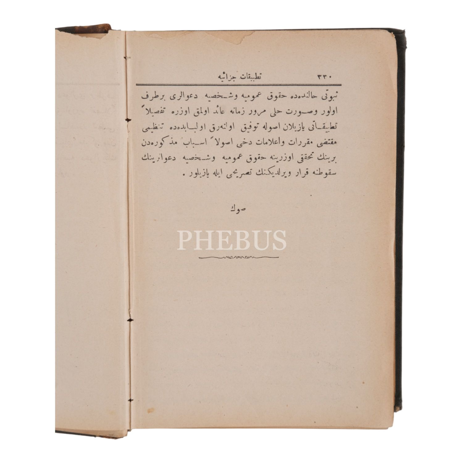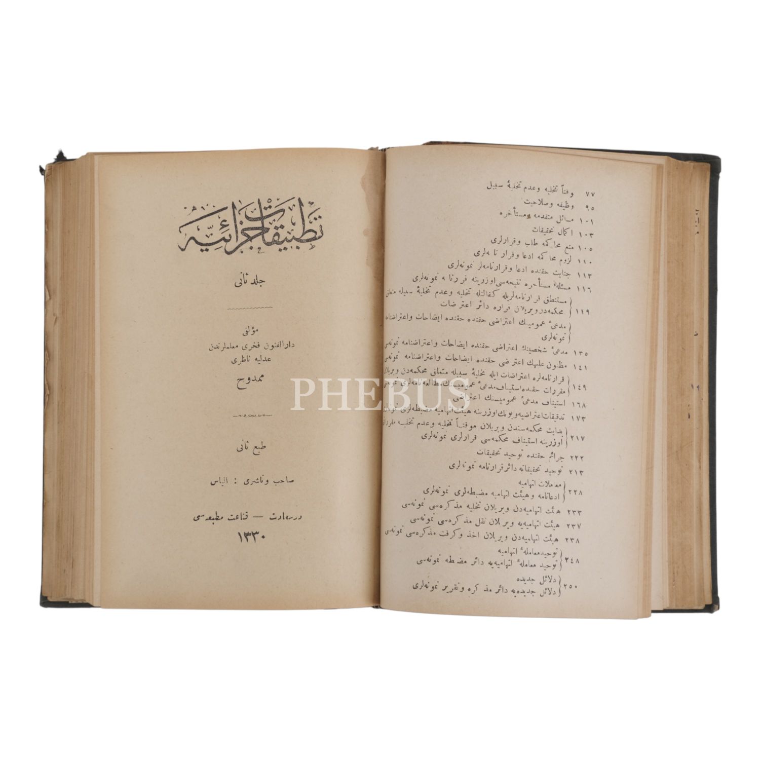 TATBÎKÂT-I CEZÂİYE, 2 cilt ve zeyli bir arada, Adliye Nazırı Memduh Bey, 1330, Kanaat Matbaası, 254+308+330 sayfa, 12x18 cm...