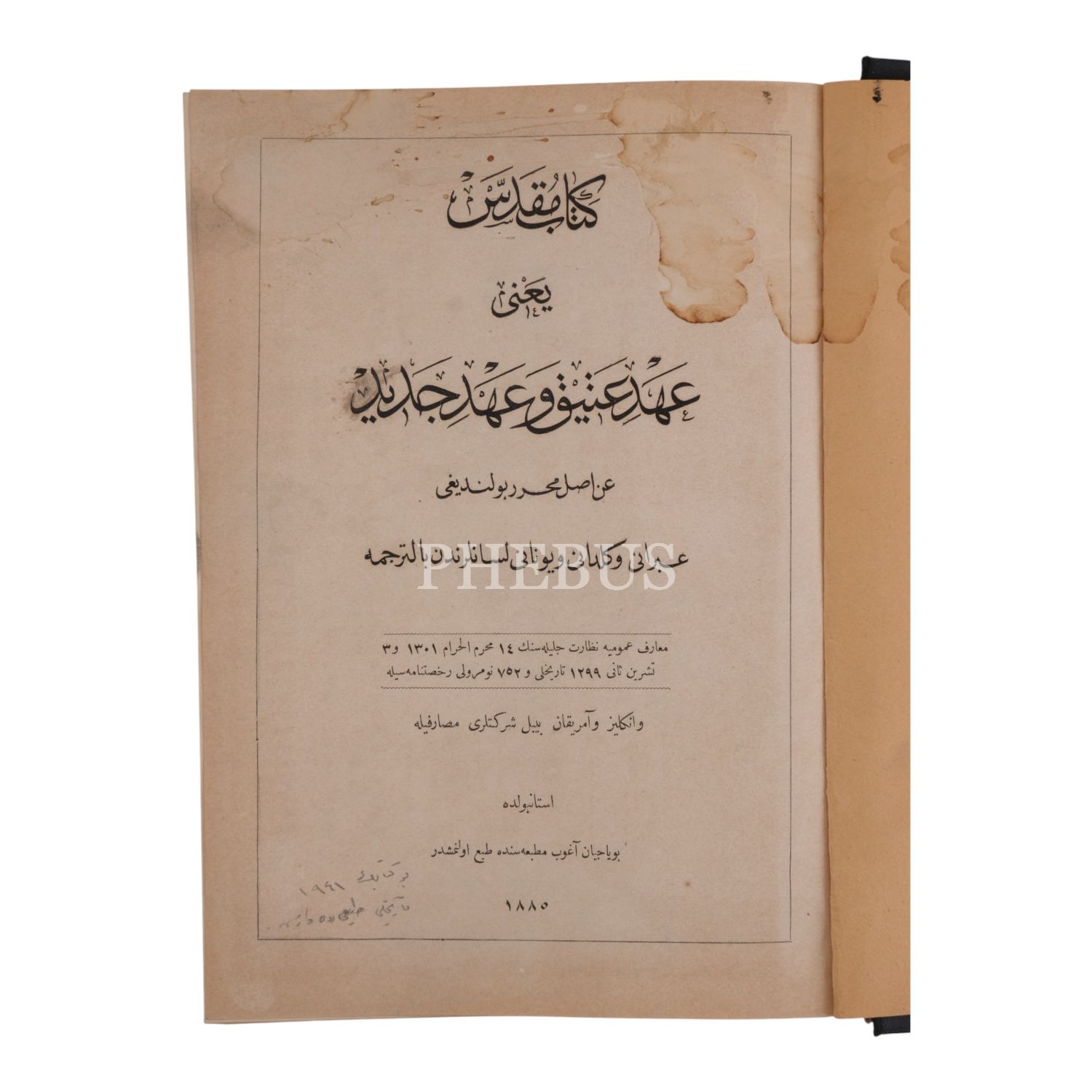 KİTÂB-I MUKADDES yani AHD-İ ATİK ve AHD-İ CEDİD, 1885, Boyacıyan Agop Matbaası, 1422 sayfa, 19x27 cm...