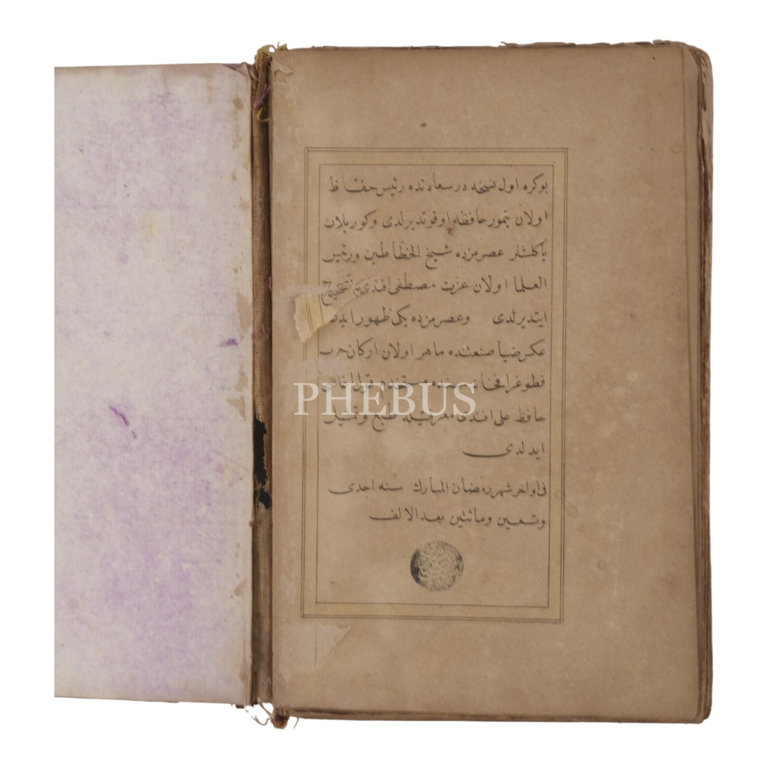 Kırmızı deri cildinde. Cildi yorgundur. Mıklebi kopuktur, kitabın içine bırakılmıştır.