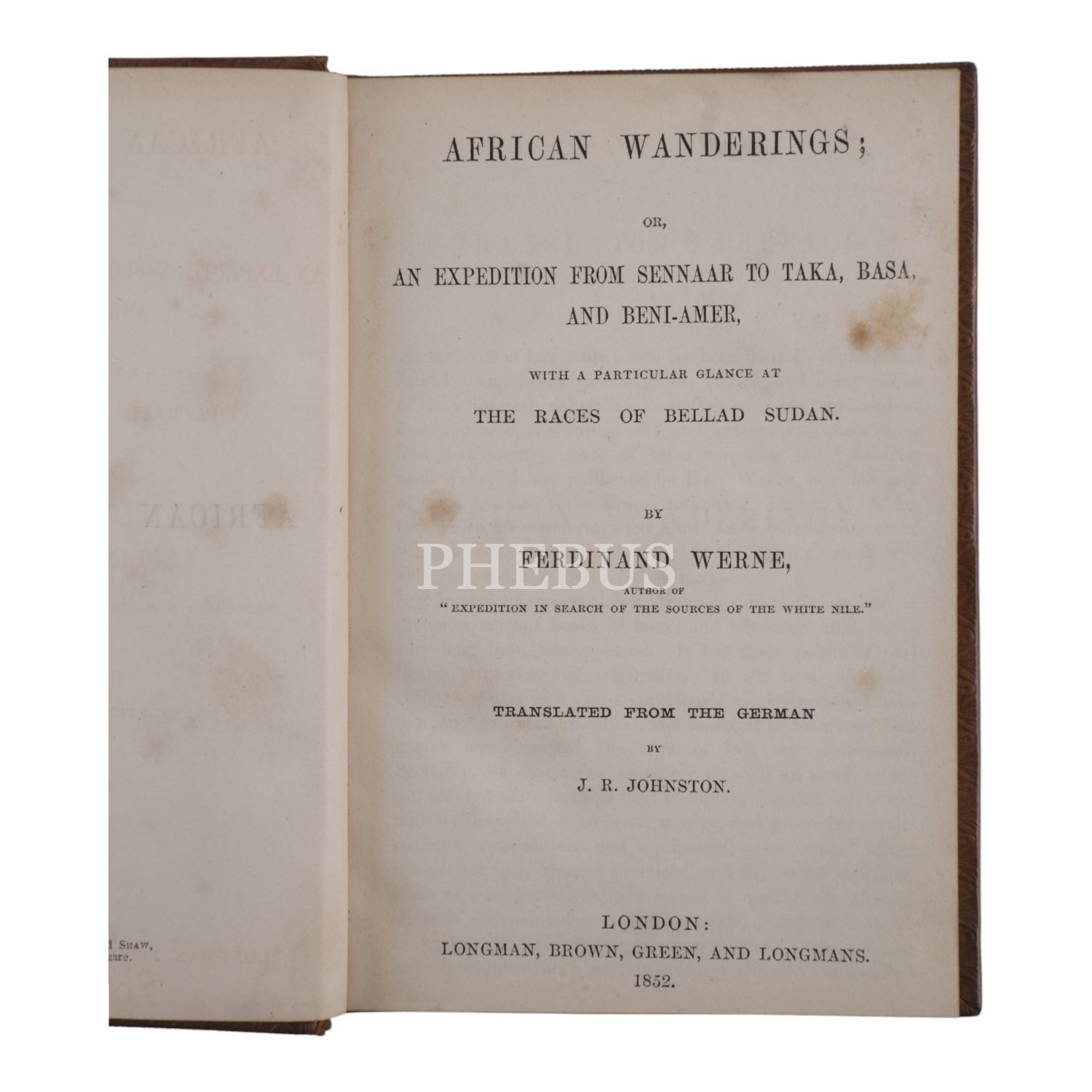 AFRICAN WANDERINGS OR, AN EXPEDITION FROM SENNAAR TO TAKA, BASA AND BENI-AMER, Ferdinand Werne, 1852, Longman, Brown, Green, and Longmans, London, 267 sayfa, 1 harita, 17x11,5 cm...