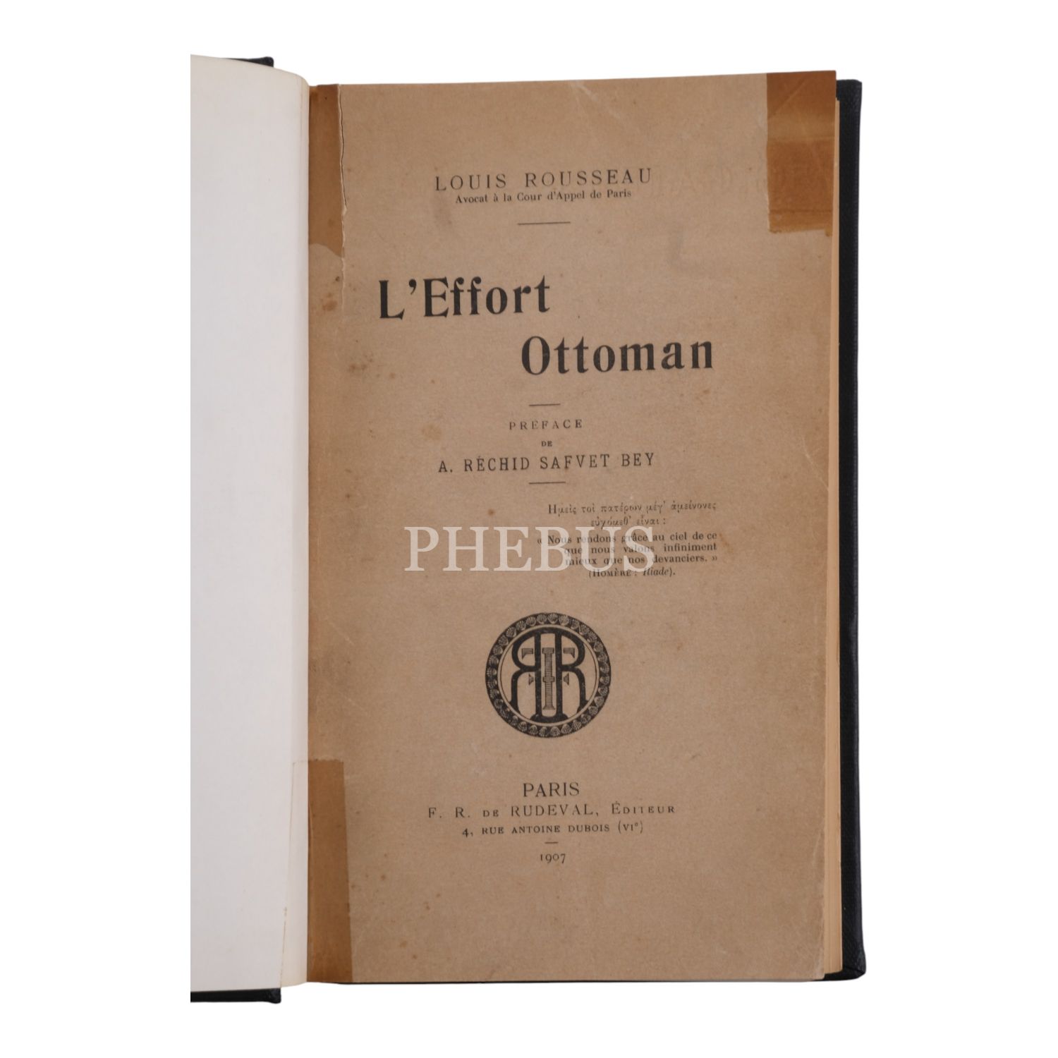 L´EFFORT OTTOMAN, Louis Rousseau, 1907, F. R. de Rudeval, Paris, 355 sayfa, 22,5x13,5 cm...