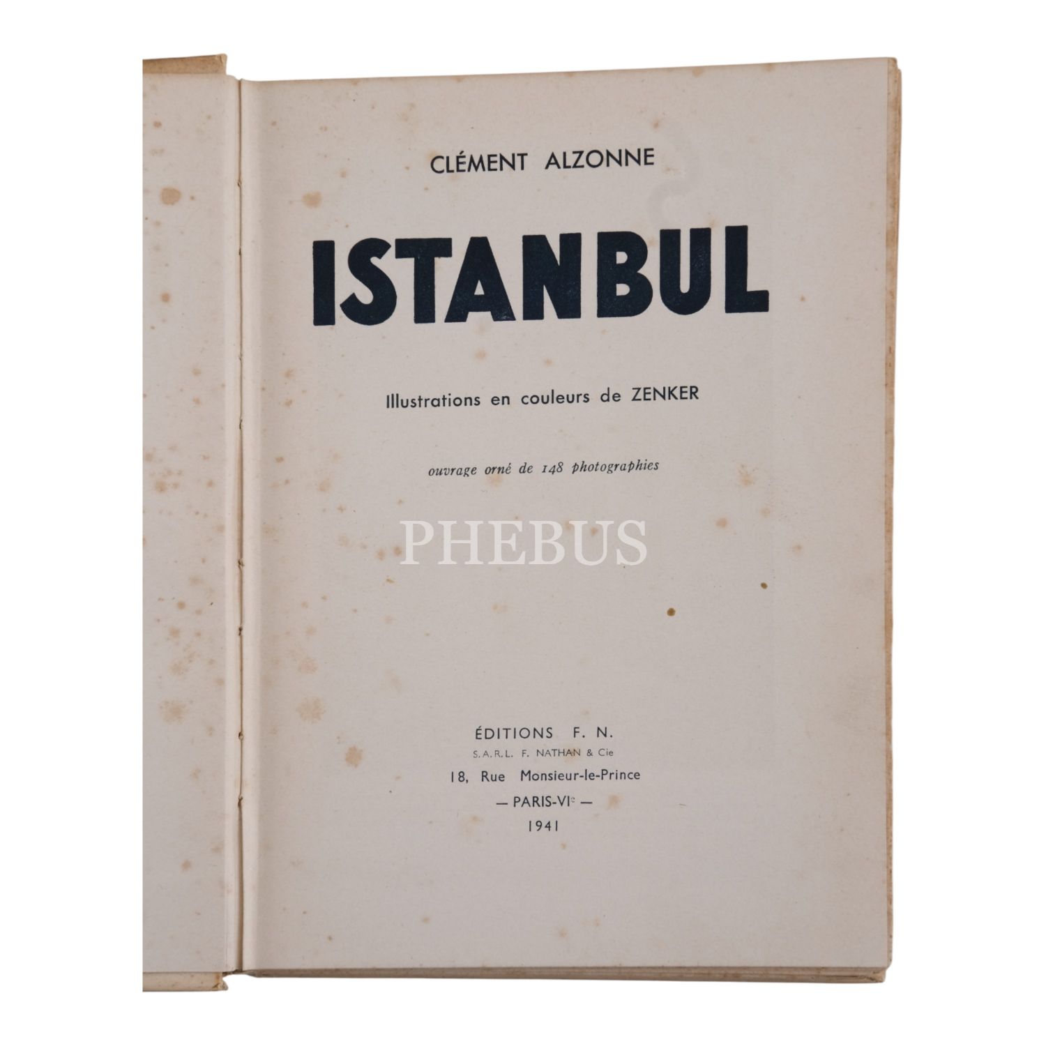 ISTANBUL, Clément Alzonne [Jules Alfred Pierre Rouch], 1941, Éditions F. N., Paris, 160 sayfa, 21x15 cm...