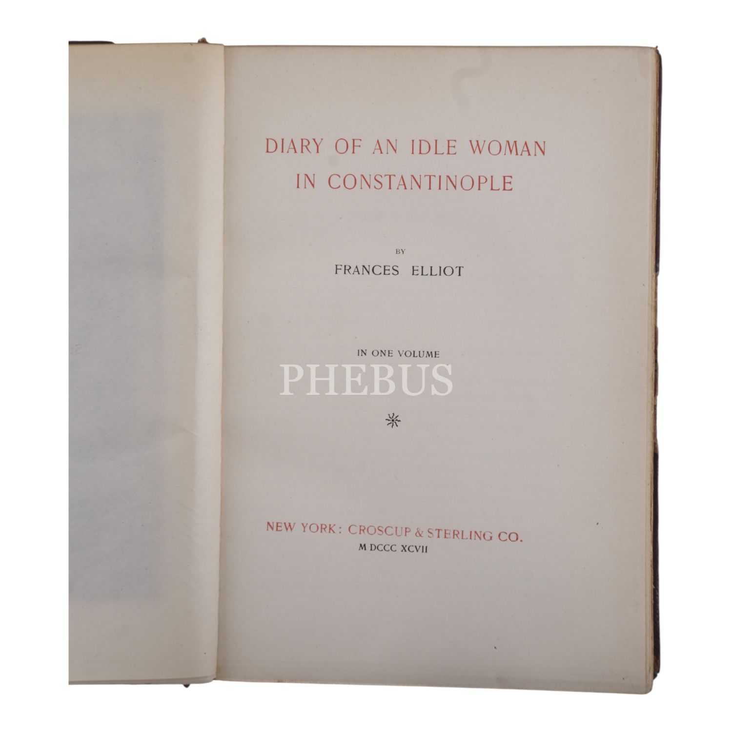 DIARY OF AN IDLE WOMAN CONSTANTINOPLE, Frances [Minto] Elliot, 1897, Croscup & Sterling Co, New York, 350 sayfa, 16,5x12 cm...
