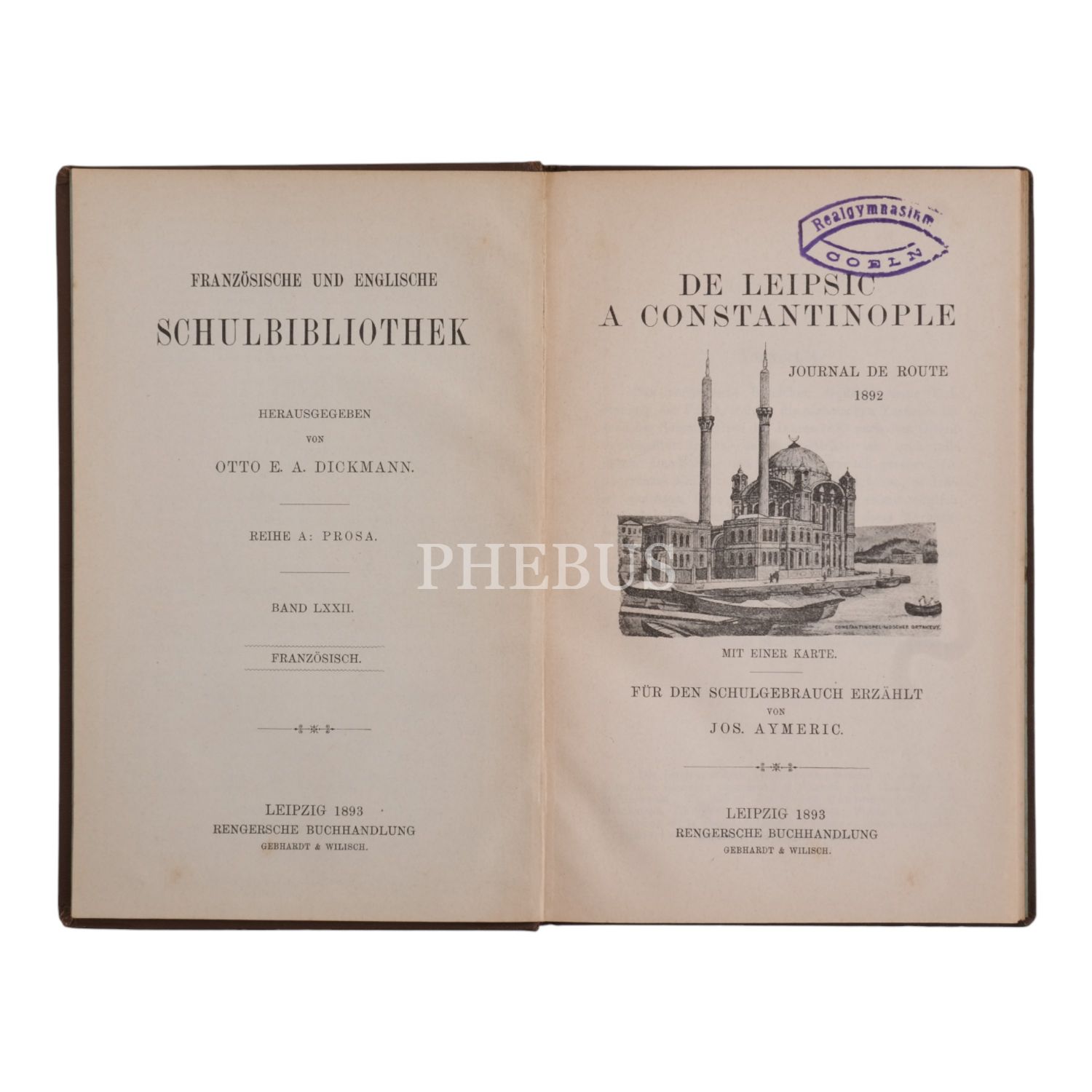 DE LEIPSIC A CONSTANTINOPLE, JOURNAL DE ROUTE 1892, Jos. Aymeric, 1893, Rengersche Buchandlung, Leipzig, 105 sayfa, 19,5x12,5 cm...