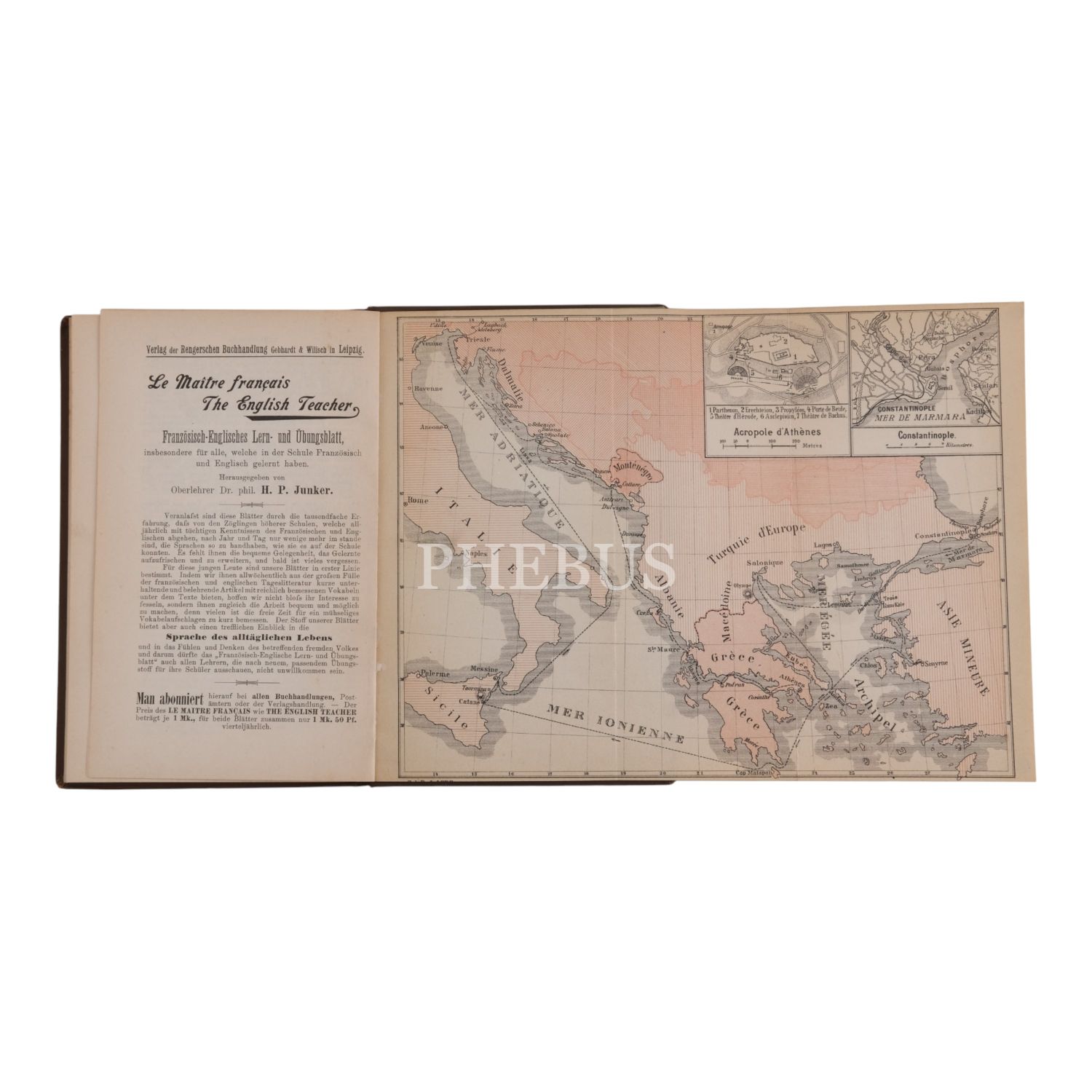 Almanya’da Fransızca olarak basılmış son derece nadir bir kitaptır. 1892 yazında tertiplenen bir okul gezisine katılan Dr Jos. Aymeric Almanca olarak yazdığı giriş yazısında yolculuk boyunca gördüğü masal dünyasını andıran güzellikleri okuyucu ile paylaşma arzusu ile kitabı yazdığını belirtiyor. S 47-54 arasındaki XII. bölümde Selanik ile İstanbul arasındaki güzergah, s 54-82 arasındaki XIII. bölümde İstanbul, s 82-88 arasındaki XIV. bölümde ise İstanbul-İzmir yolculuğu ve İzmir anlatılmaktadır. Arka kapak içinde 1 renkli katlanır harita mevcuttur. Bez cildinde.