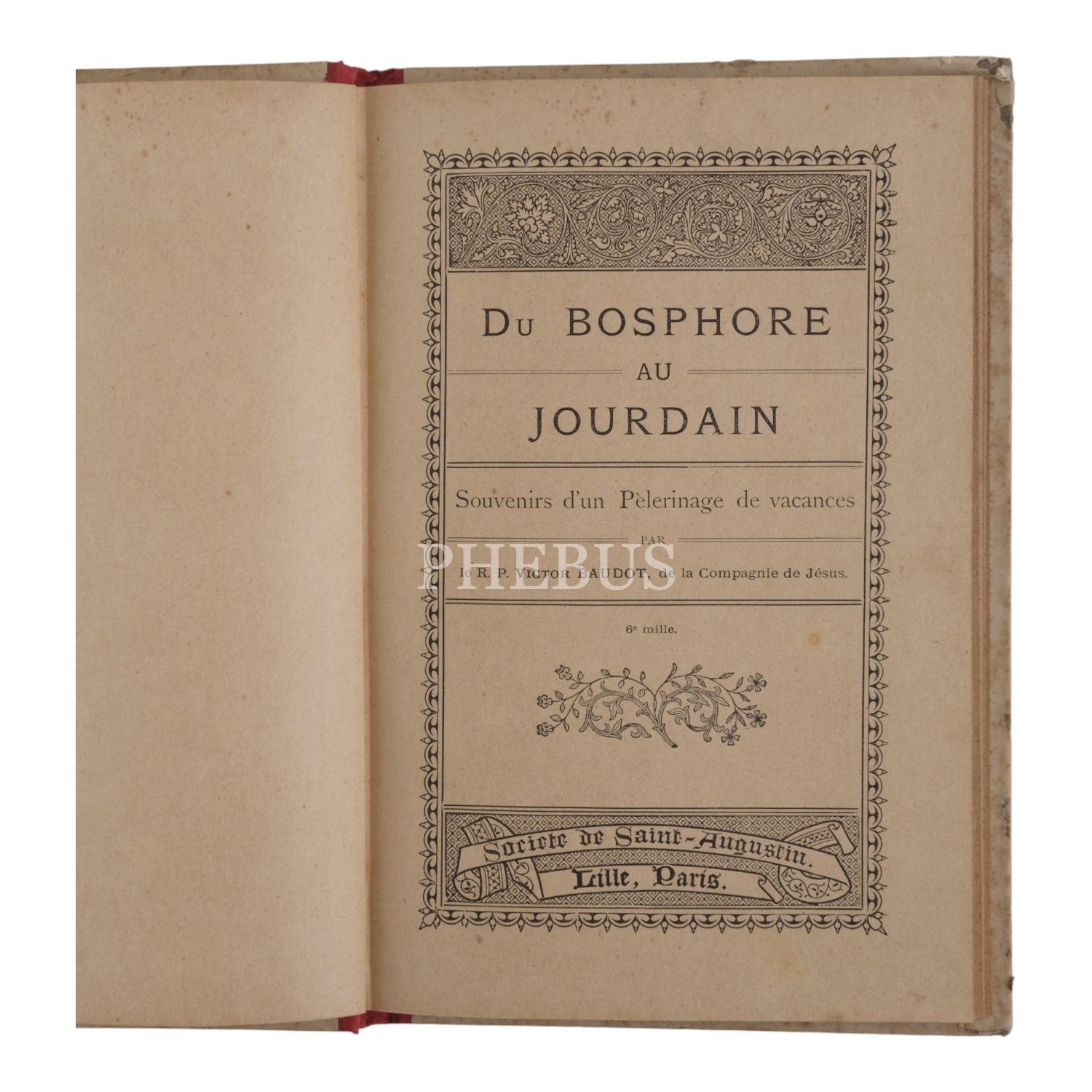DU BOSPHORE AU JOURDAIN, SOUVENIRS D´UN PÈLERINAGE DE VACANCES, Victor Baudot, 1891, Societe de Saint Augustin, Lille, Bruges, 94 sayfa, 23,5x15 cm...