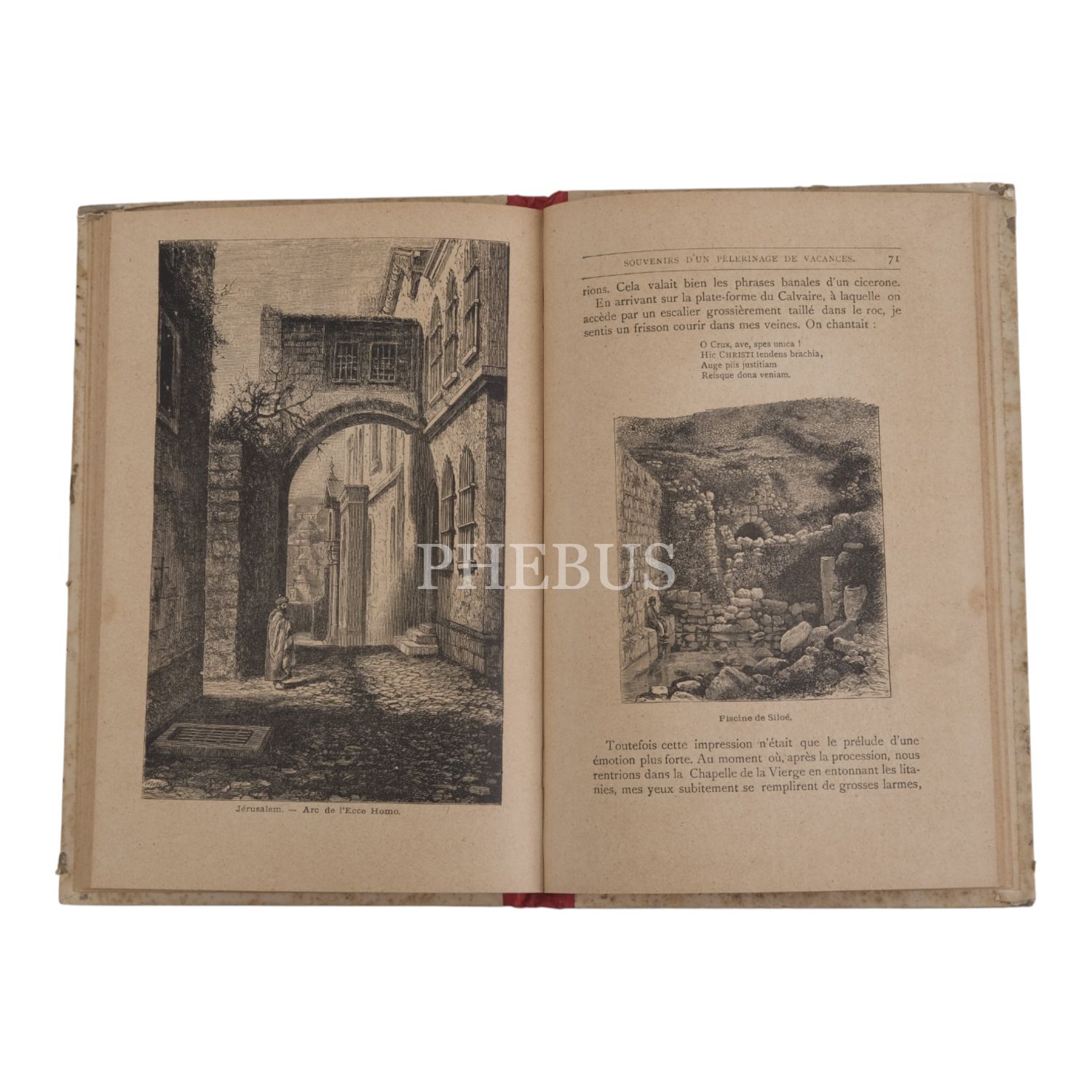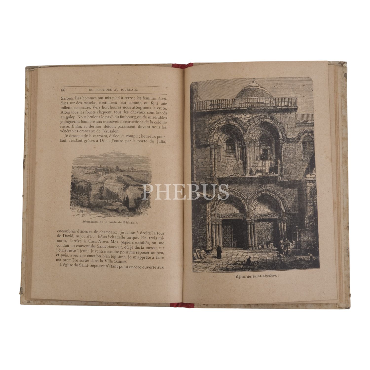 Metin içinde, dördü tam sayfa olmak üzere 30 tahta baskı gravür mevcuttur. Yayıncısının karton cildinde. Fransız yazarın 1883 tarihli Filistin seyahatnamesi. İstanbul’dan başlayan seyahatin deniz yolu ile Anadolu kıyıları boyunca devam eden kısımları 1. bölümde (s. 1- 30) anlatılmaktadır.