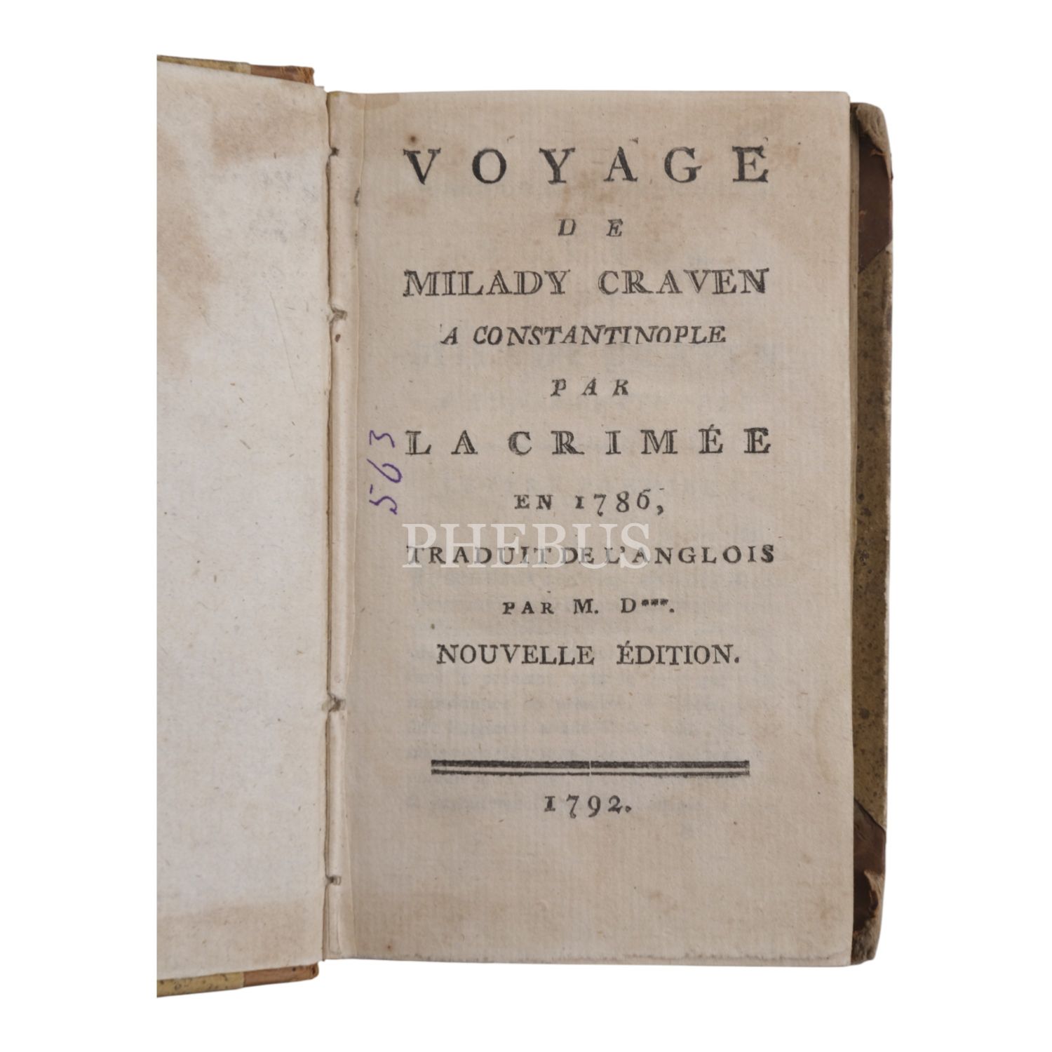 VOYAGE DE MILADY CRAVEN A CONSTANTINOPLE PAR LA CRIMÉE EN 1786, TRADUIT DE L’ANGLOIS PAR M. D***, Elizabeth Craven, 1792, 351 sayfa, 13x8 cm...
