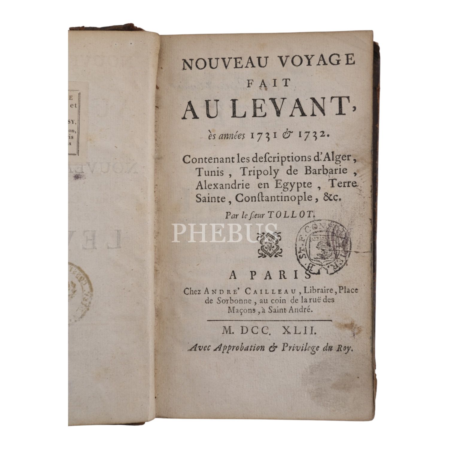 NOUVEAU VOYAGE FAIT AU LEVANT, ÈS ANNÉES 1731 & 1732, [Jean Baptiste] Tollot, 1742, 354 sayfa, 16x10 cm...