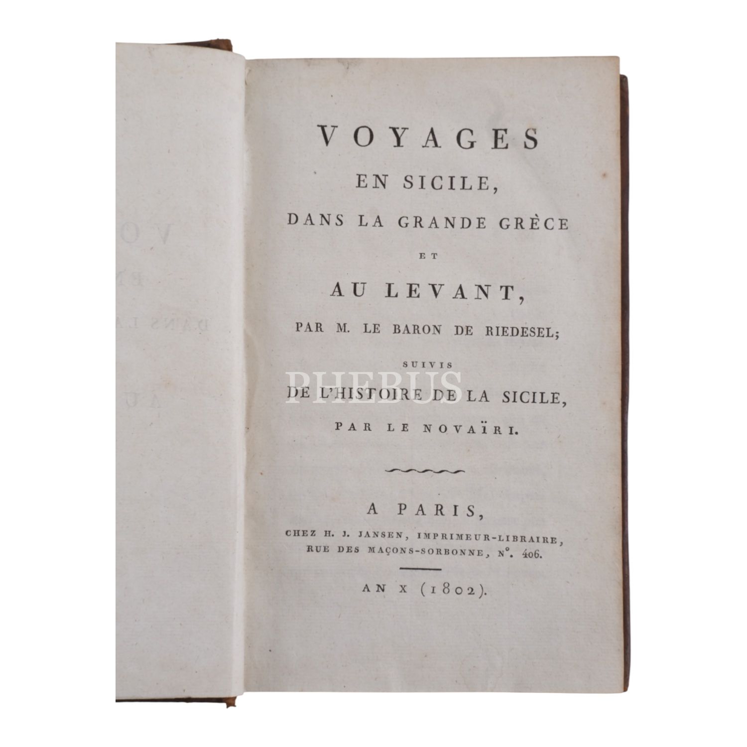 CAUSSIN DE PERCEVAL, VOYAGES EN SICILE, DANS LA GRANDE GRÈCE ET AU LEVANT, Johann Hermann von Riedesel, 1802, H. J. Jansen, Paris, 451 sayfa, 20,5x13 cm...