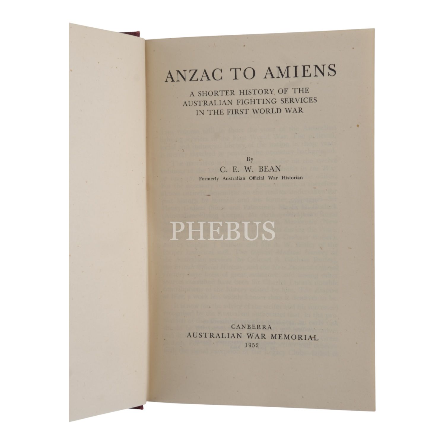 BEAN, ANZAC TO AMIENS: A SHORTER HISTORY OF THE AUSTRALIAN FIGHTING SERVICES IN THE FIRST WORLD WAR, C[harles]. E[dwin]. W[oodrow], 1952, Australian War Memorial, Canberra, 567 sayfa, 13,5x21,5 cm...