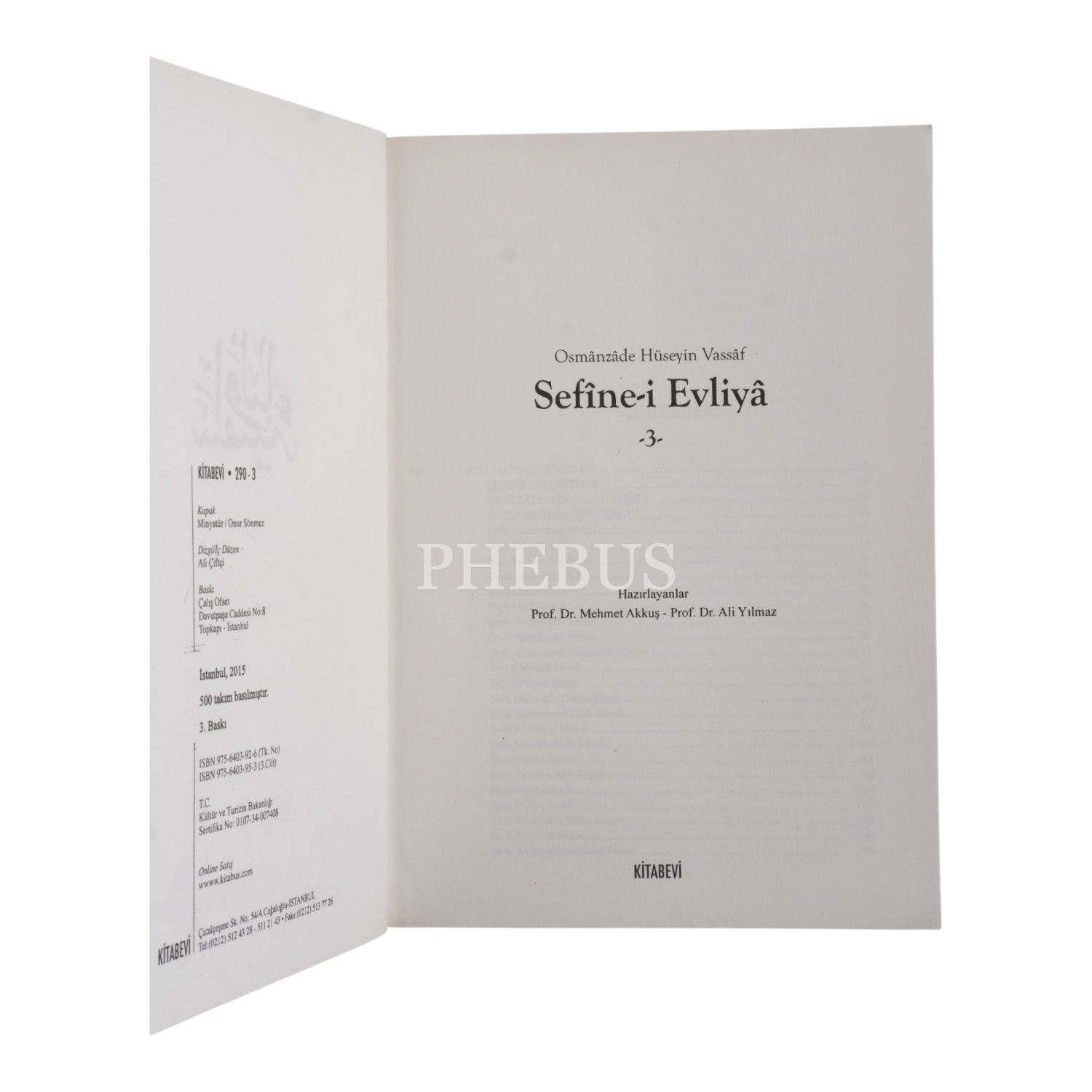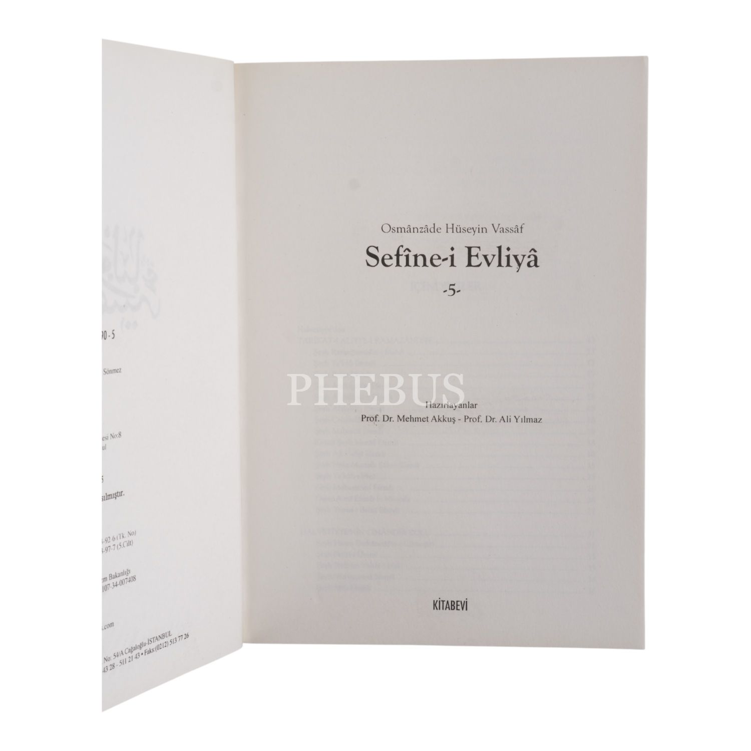 SEFİNE-İ EVLİYA (5 Cilt Takım), Osmanzade Hüseyin Vassaf, (Hazırlayanlar: Mehmet Akkuş - Ali Yılmaz), 2015, Kitabevi Yayınları, 17x24 cm...