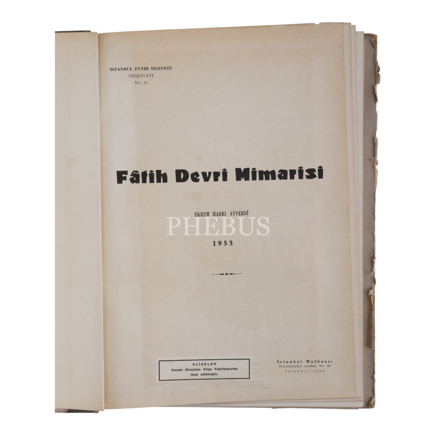 FATİH DEVRİ MİMARİSİ, Ekrem Hakkı Ayverdi, 1953, İstanbul Matbaası, 511 sayfa, 25x34 cm...