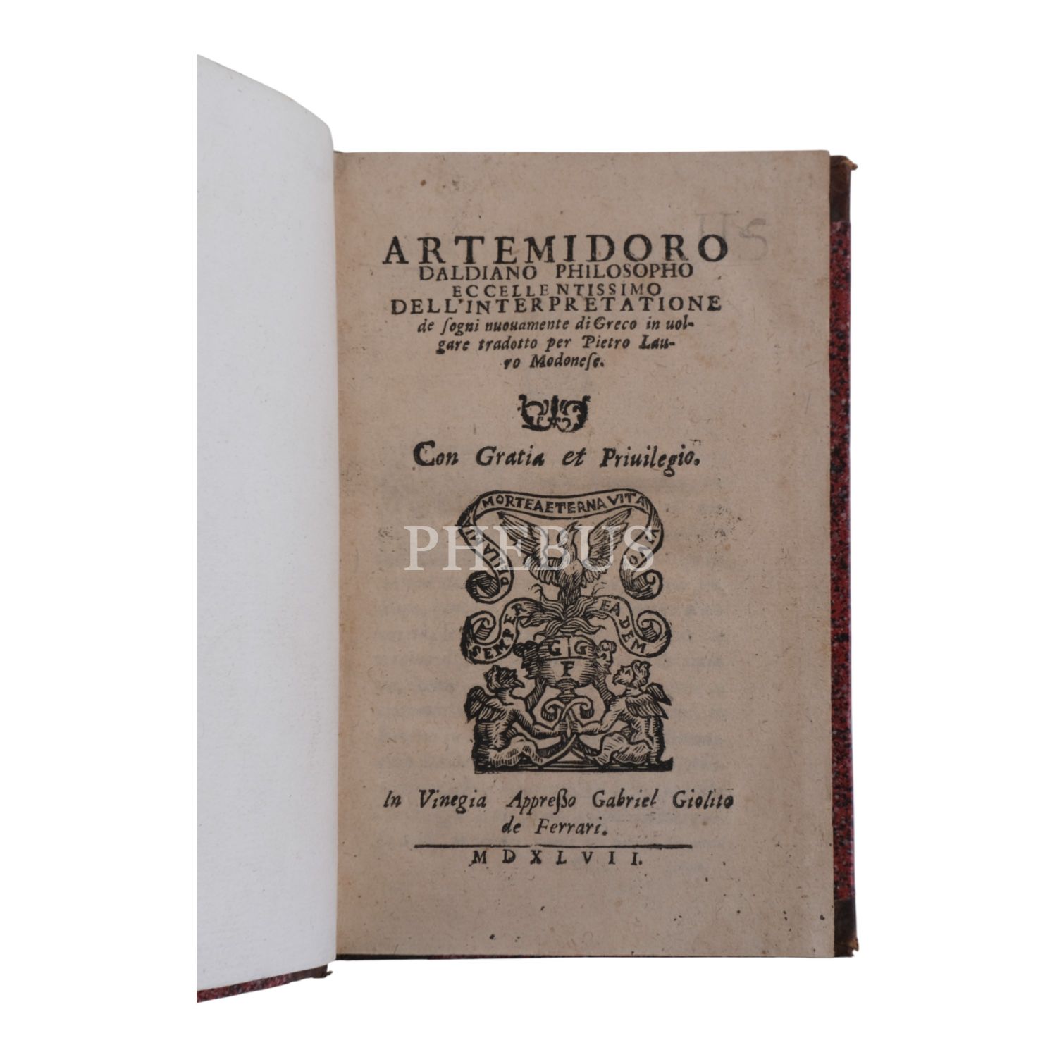 ARTEMIDORO DALDIANO PHILOSOPHO ECCELLENTISSIMO DELL´ INTERPRETATIONE... Con Gratia et Priuilegio, 1547, Gabriel Giolito de Ferrari, Vinegia, 293 sayfa, 10x16 cm...