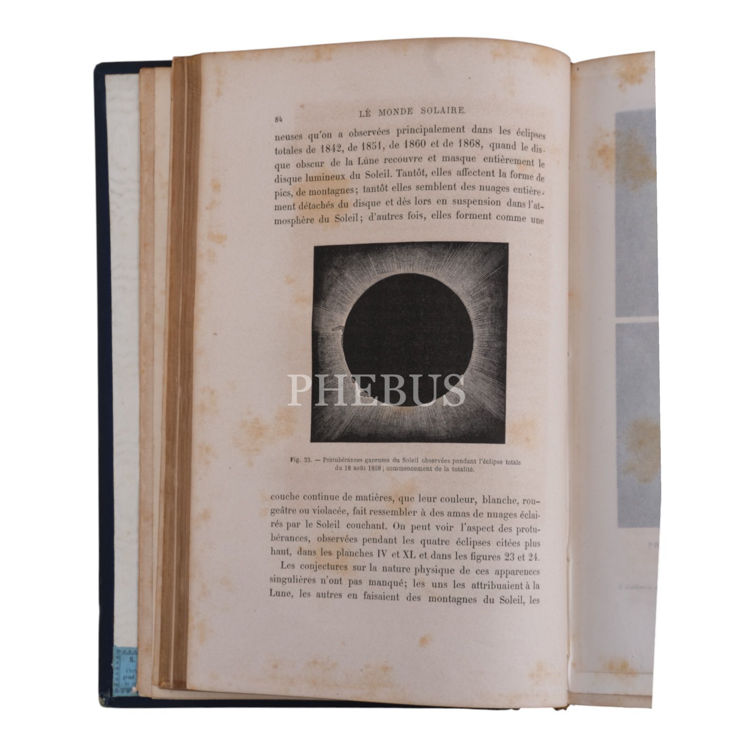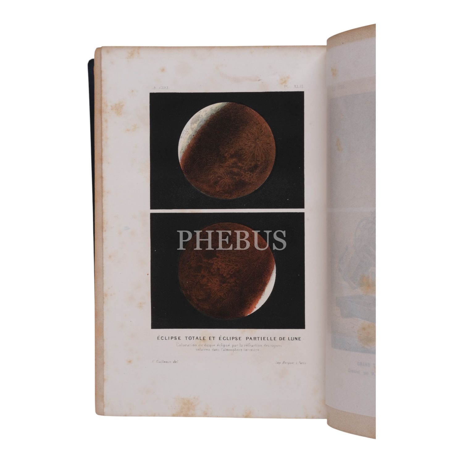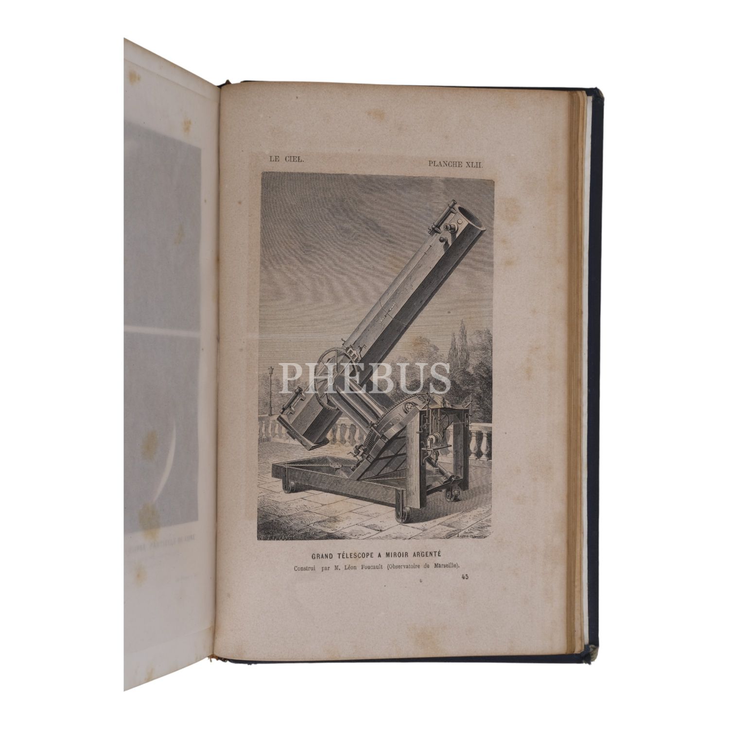 Çok sayıda görsel ve planş eşliğinde gökyüzüne, gezegenlere ve evrene dair kapsamlı bir çalışma... Sırtı panelli ve altın yaldız dekorlu dönem cildinde. Ön iç kapağında İstanbul merkezli kitapçı etiketi yer almaktadır: "S. H. Weiss Librairie - Constantinople, Grand rue de Pera" *Sırtında açılma mevcuttur.